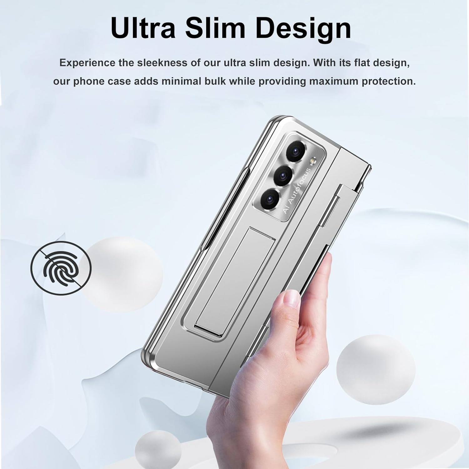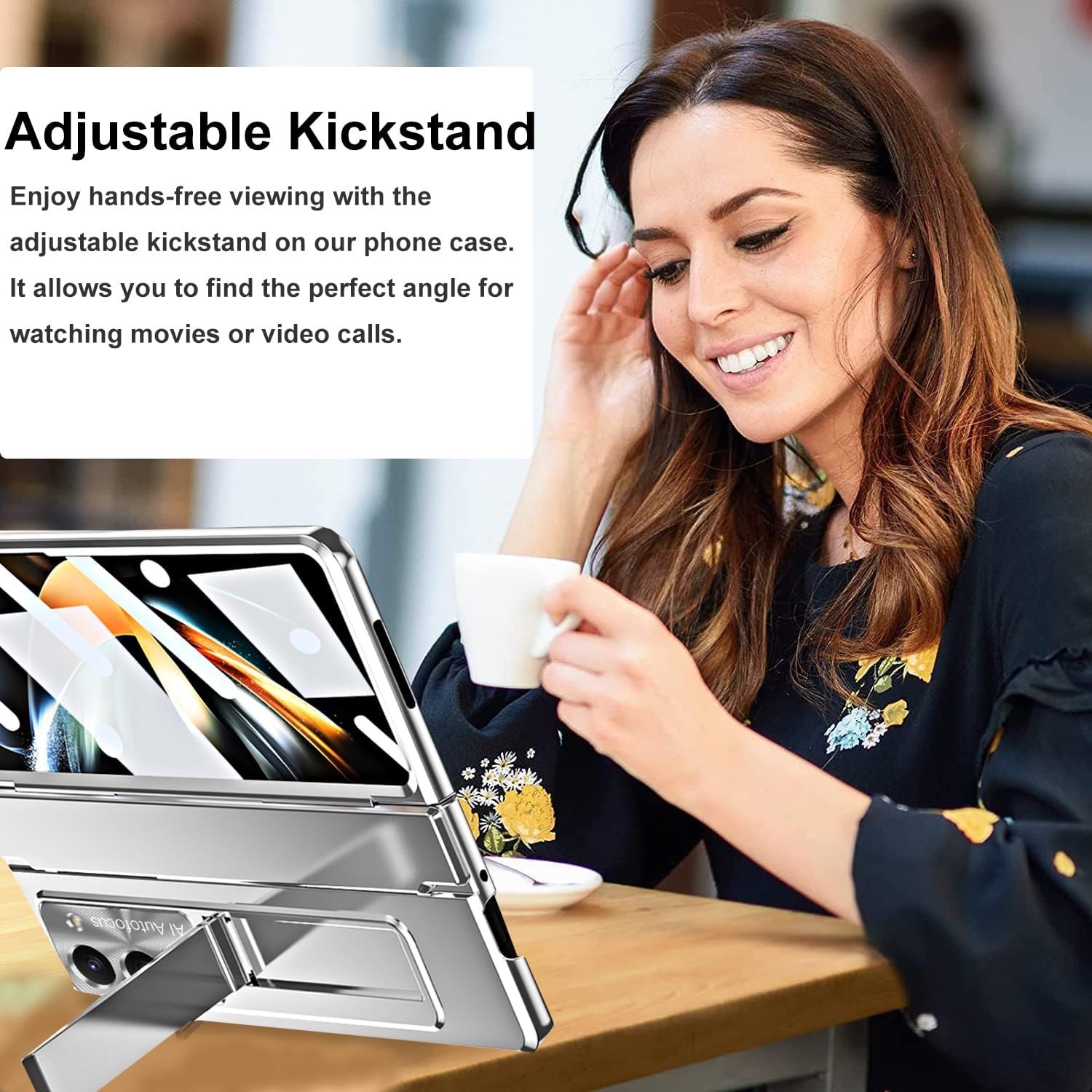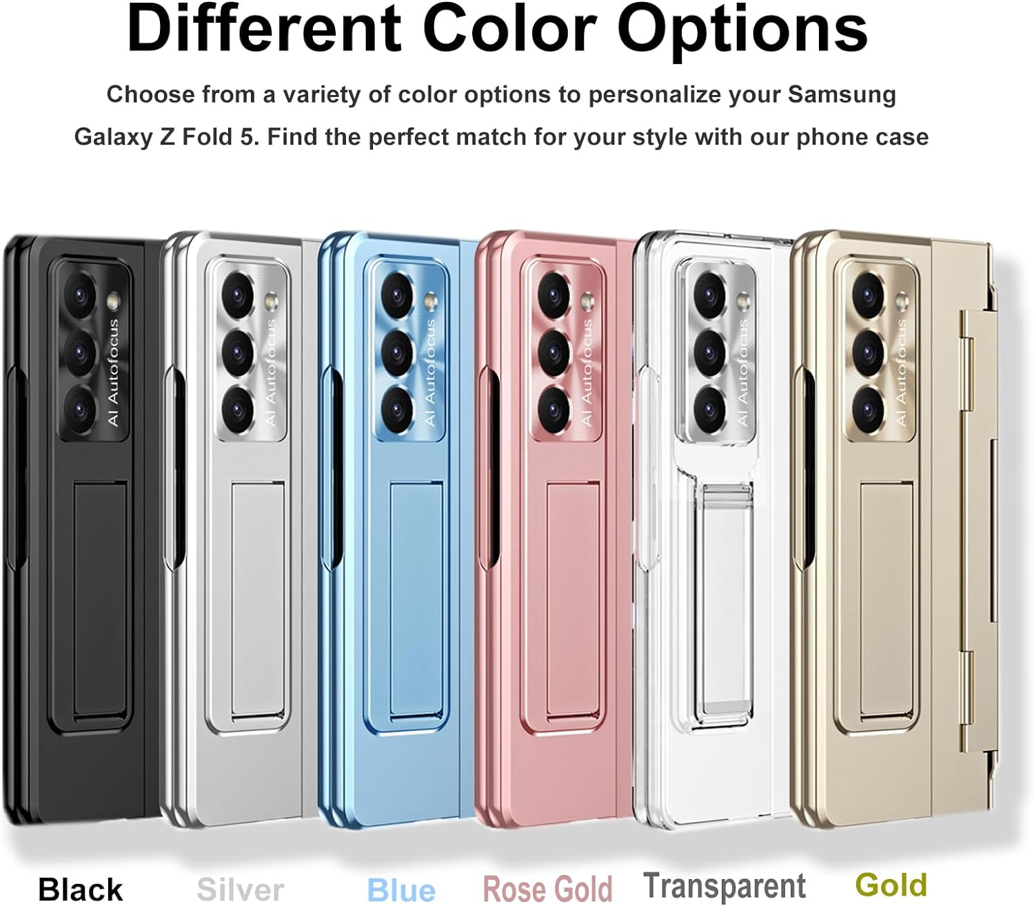 - [Hinged Cover+Ständer] Die Galaxy Fold 5 hülle hat einen Scharnier Cover. Clevere Konstruktion und Präzise Aussparung ermöglicht freies Falten und vollen Zugriff auf die Telefontasten und Ladeanschlüsse. Der eingebaute Ständer der Rückseite hält
