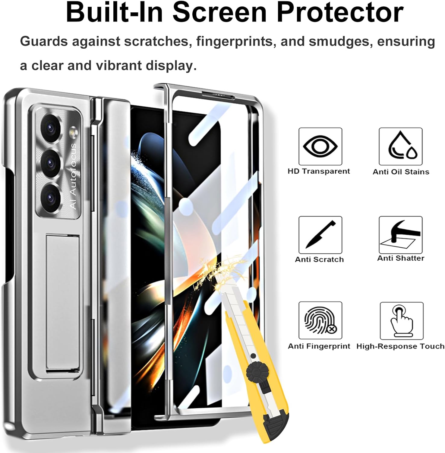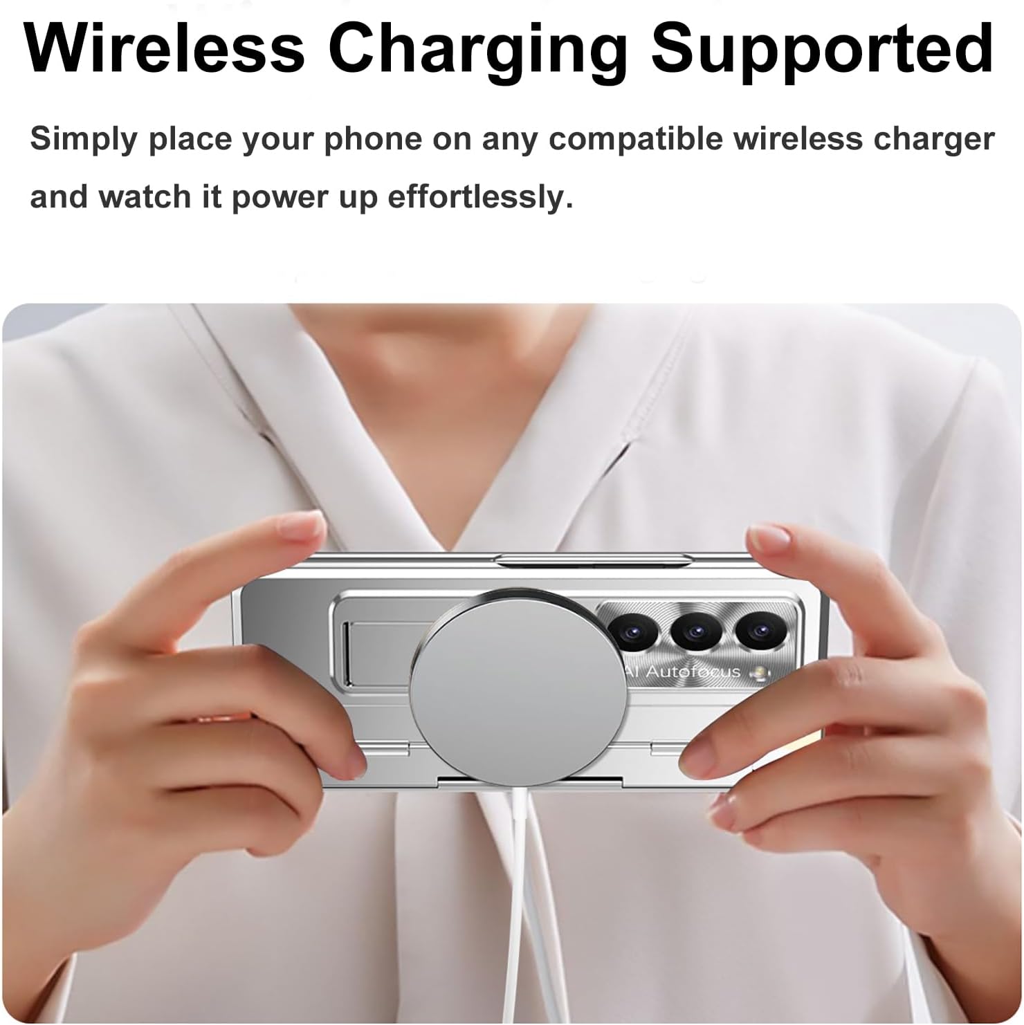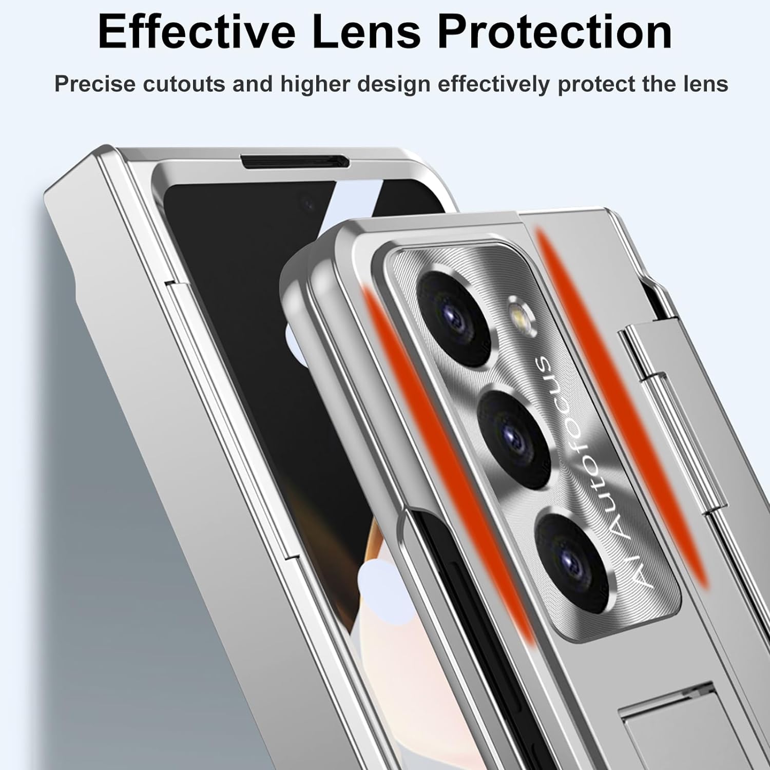- [Hinged Cover+Ständer] Die Galaxy Fold 5 hülle hat einen Scharnier Cover. Clevere Konstruktion und Präzise Aussparung ermöglicht freies Falten und vollen Zugriff auf die Telefontasten und Ladeanschlüsse. Der eingebaute Ständer der Rückseite hält