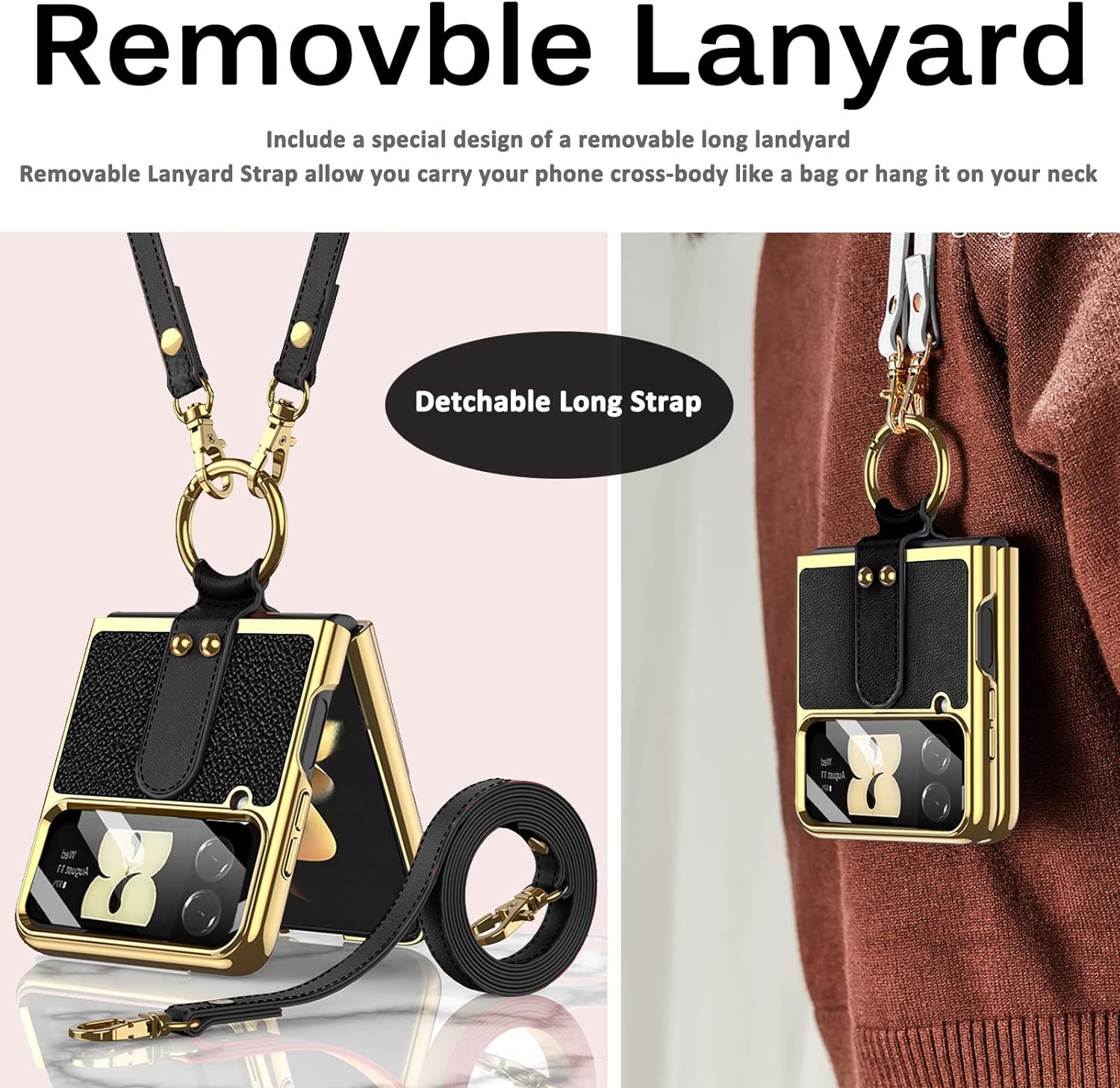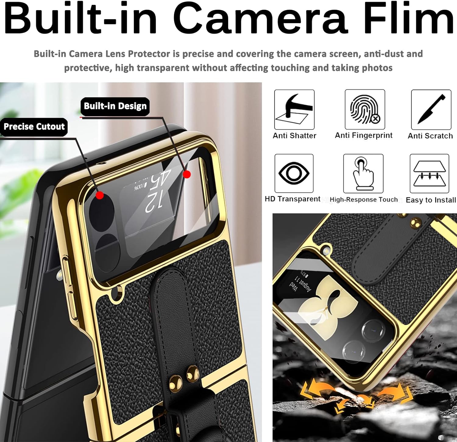 - [Kameraschutz] Diese Samsung Flip 4 5g Hülle mit band verfügt über einen integrierten Glasschutz für kleine Bildschirme mit hoher Berührungsempfindlichkeit und präzisem Schneiden, der den kleinen Bildschirm und die Kamera Ihres Telefon vor
