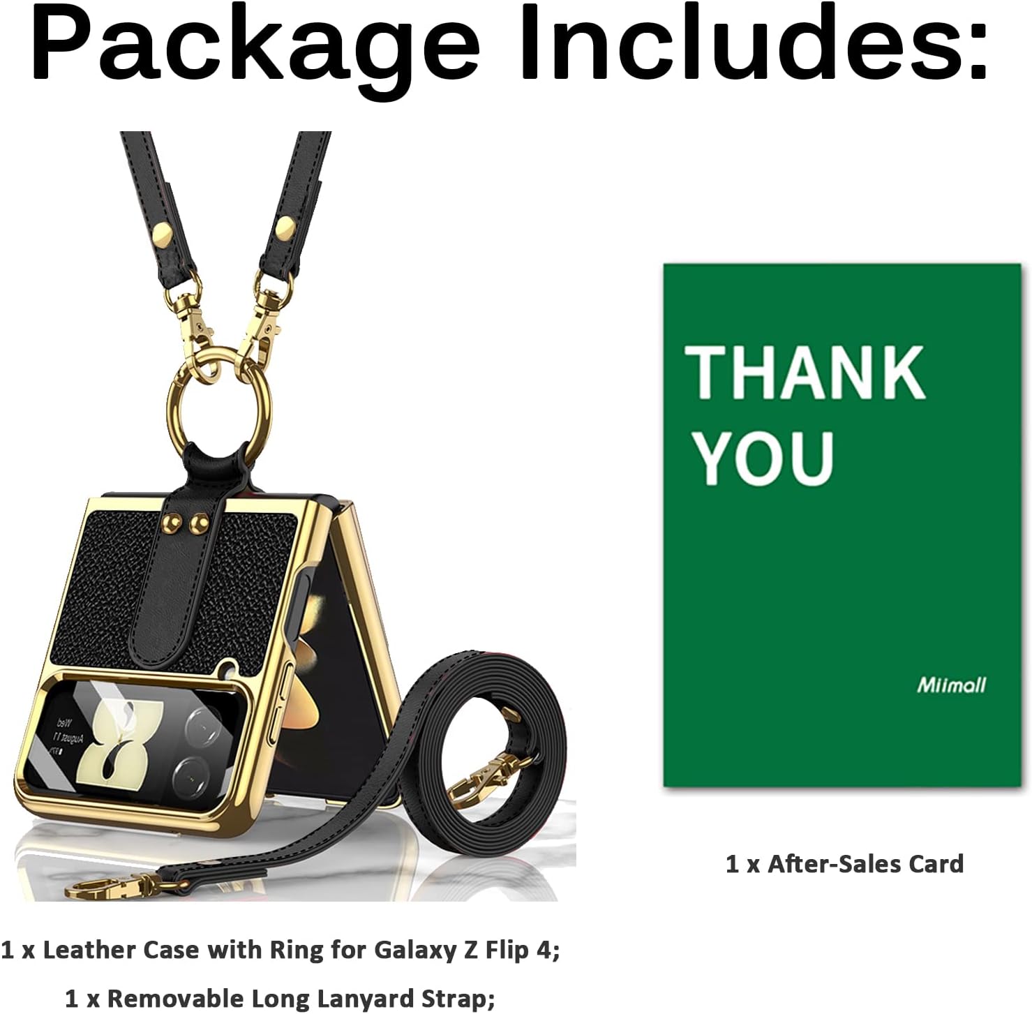 - [Miimall Service] Das Paket beinhaltet: 1 x Samsung Galaxy Z Flip 4 5G Lederhülle mit Ring+Band, 1 x After Sales Karte. Wenn Sie weitere Fragen haben, können Sie sich gerne an uns wenden. Wir werden Ihnen innerhalb von 24 Stunden antworten.