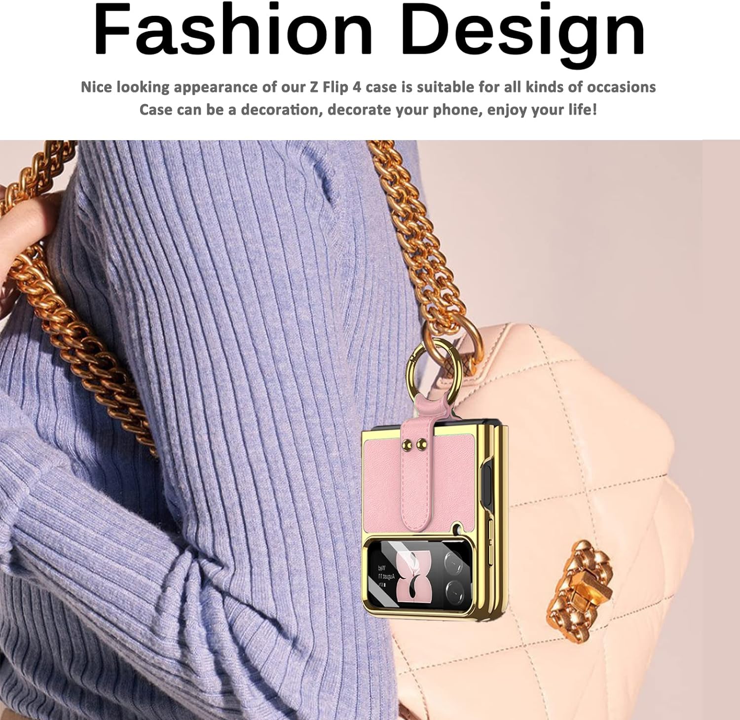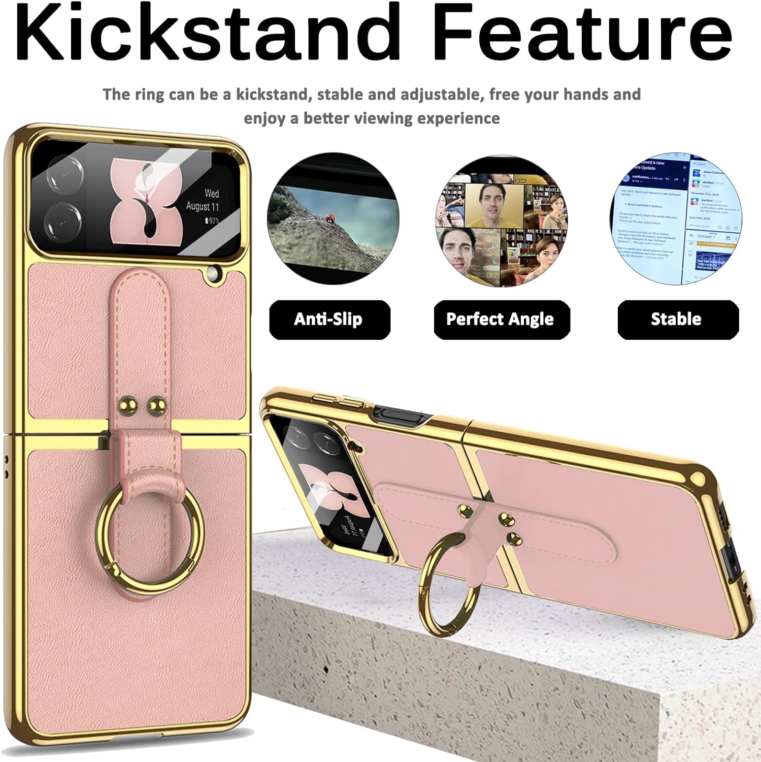 • [Premium Material] Die Rückseite der Z Flip 4 Hülle mit Ring besteht aus PU Leder material, das bequem und leicht zu greifen ist; Die Seite besteht aus hartem PC Material, ist stossfest und sturzfest. Hochwertiges Galvanisierungsverfahren bietet ein