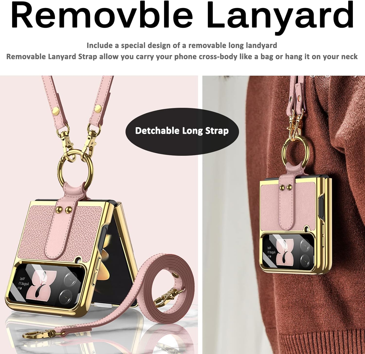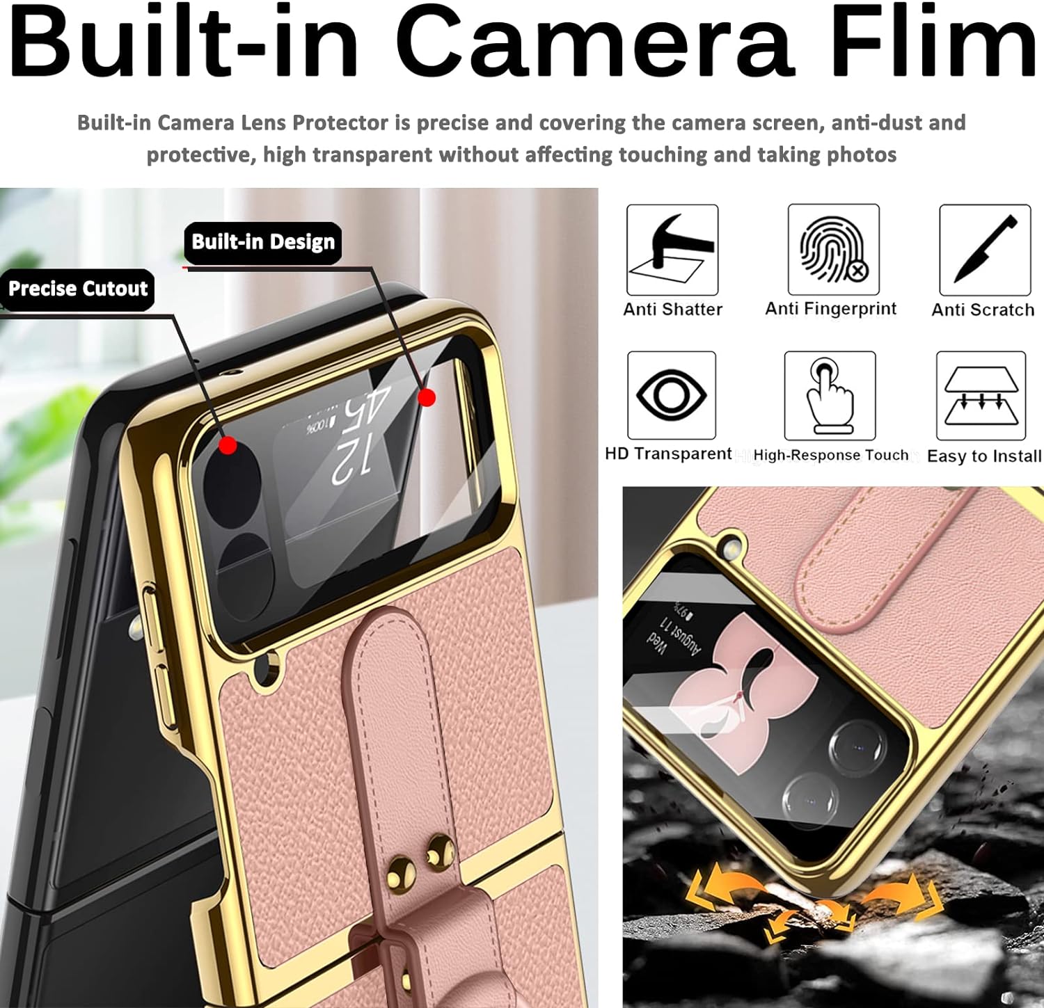 • [Kameraschutz] Diese Samsung Flip 4 5g Hülle mit band verfügt über einen integrierten Glasschutz für kleine Bildschirme mit hoher Berührungsempfindlichkeit und präzisem Schneiden, der den kleinen Bildschirm und die Kamera Ihres Telefon vor