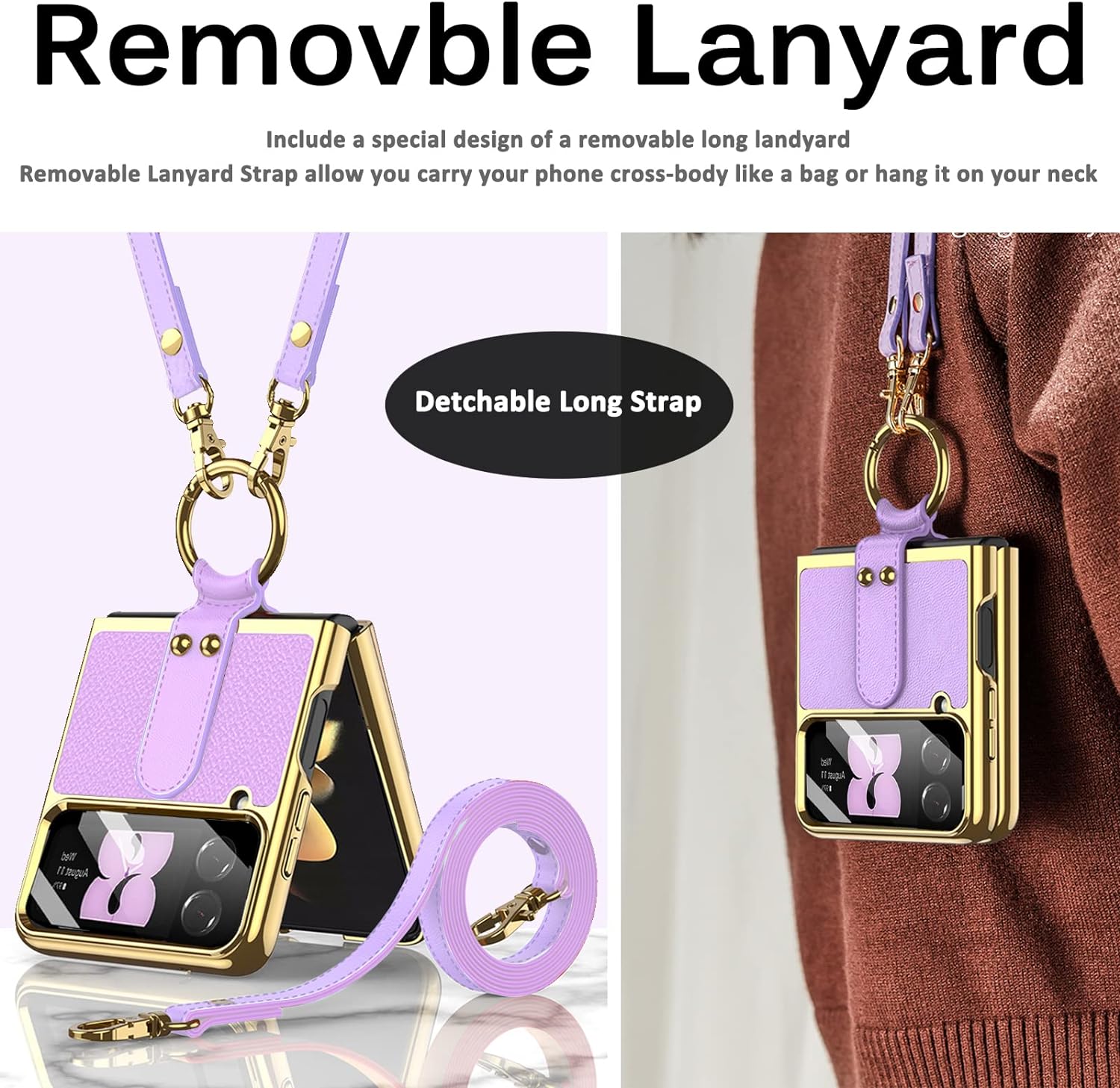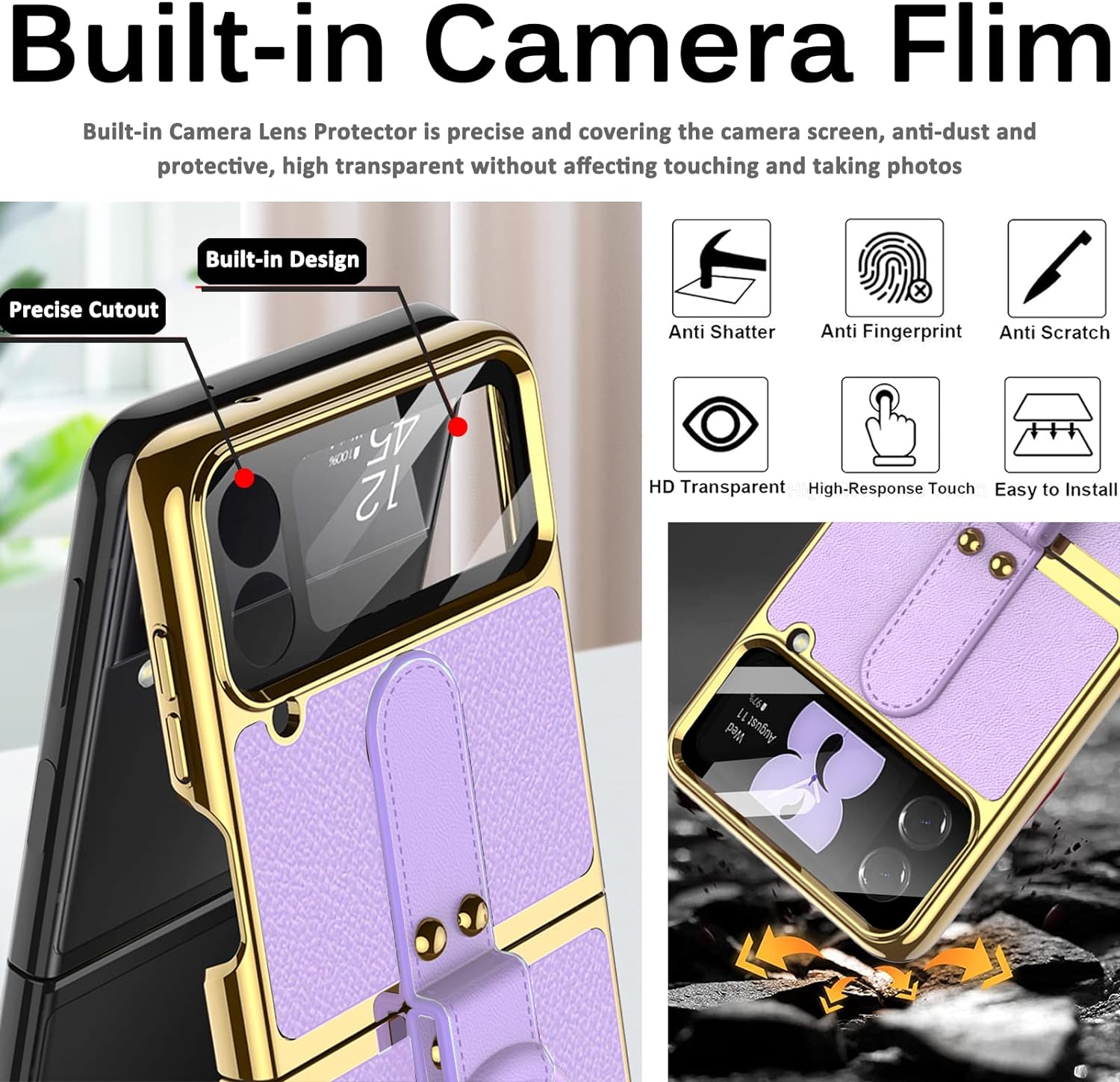 • [Kameraschutz] Diese Samsung Flip 4 5g Hülle mit band verfügt über einen integrierten Glasschutz für kleine Bildschirme mit hoher Berührungsempfindlichkeit und präzisem Schneiden, der den kleinen Bildschirm und die Kamera Ihres Telefon vor