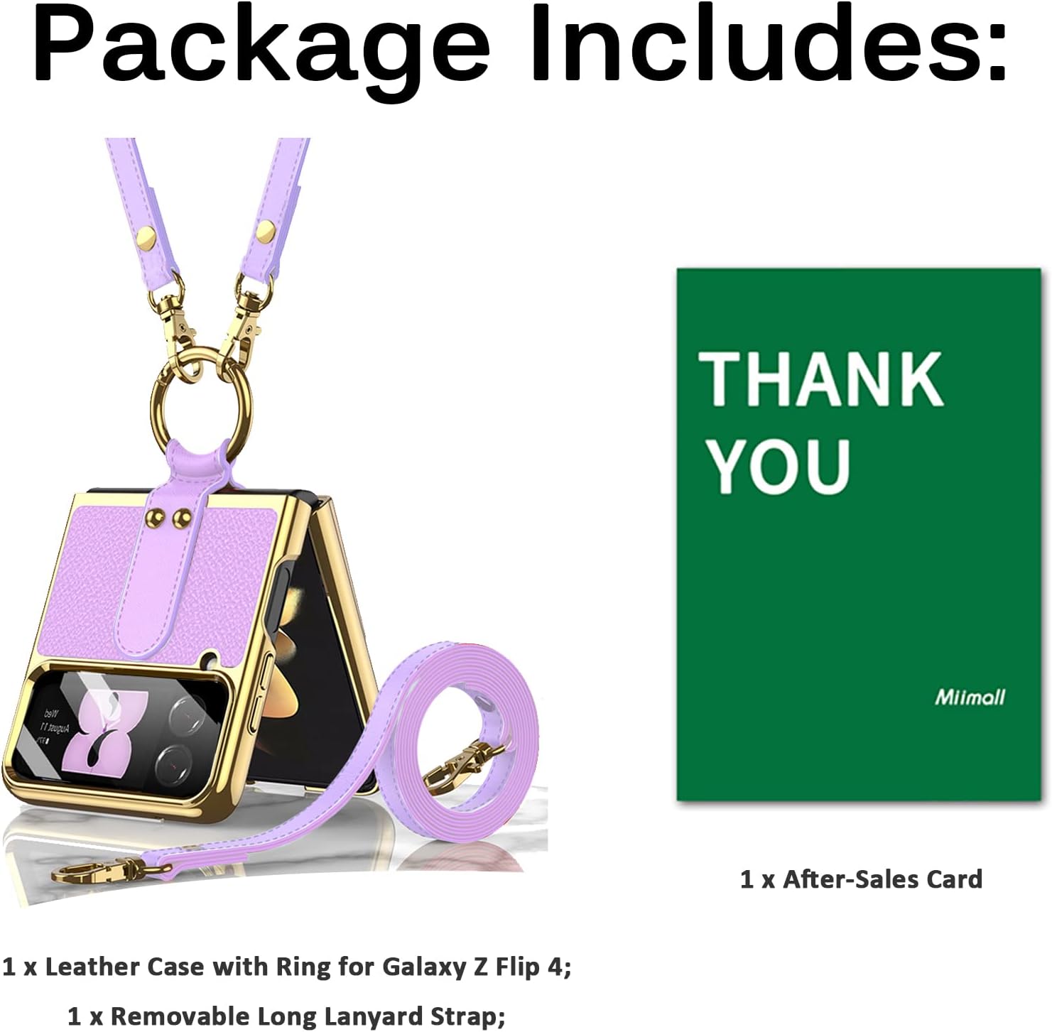• [Miimall Service] Das Paket beinhaltet: 1 x Samsung Galaxy Z Flip 4 5G Lederhülle mit Ring+Band, 1 x After Sales Karte. Wenn Sie weitere Fragen haben, können Sie sich gerne an uns wenden. Wir werden Ihnen innerhalb von 24 Stunden antworten.