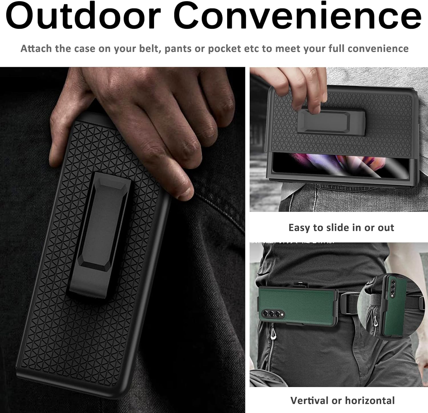 - 【mit Gürtelclip Hülle】Diese Galaxy z fold 3 Schutzhülle von uns ist mit einer Gürteltasche ausgestattet, die Handyhülle kann in die Gürteltasche gesteckt und an der Hüfte befestigt werden. Das Clip hülle lässt sich auch als Ständer
