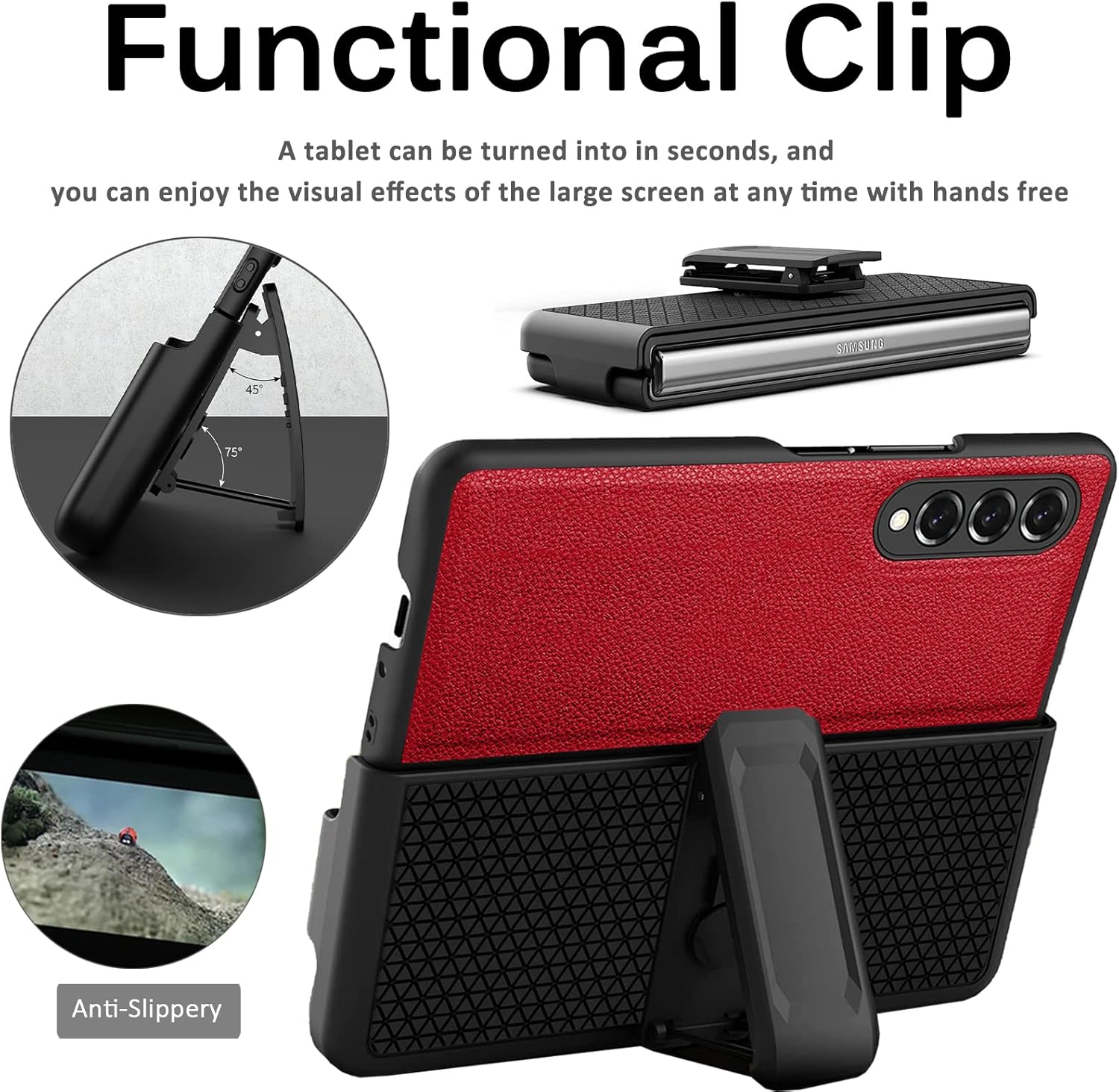 - 【mit Gürtelclip Hülle】Diese Galaxy z fold 3 Schutzhülle von uns ist mit einer Gürteltasche ausgestattet, die Handyhülle kann in die Gürteltasche gesteckt und an der Hüfte befestigt werden. Das Clip hülle lässt sich auch als Ständer
