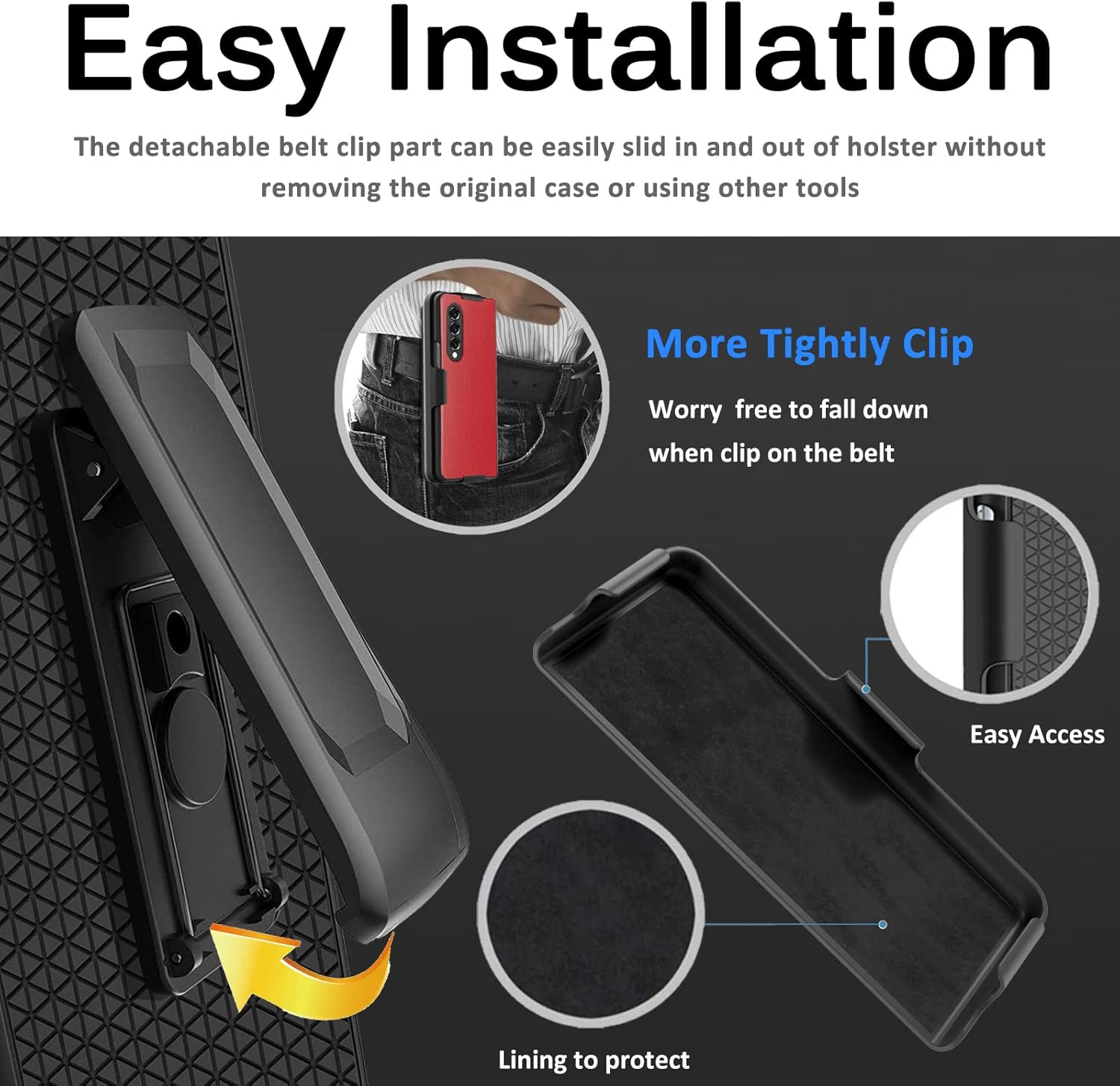 - 【Stossfeste Gürtelclip-Hülle】 Robuste Samsung Galaxy Z Fold 3 Gürtelclip Hülle aus Polycarbonat-Rahmen und Silikonmaterial, die Rückseite hat eine gummierte Textur, die leicht zu greifen ist und das Gerät vor harten Stürzen und Kratzern
