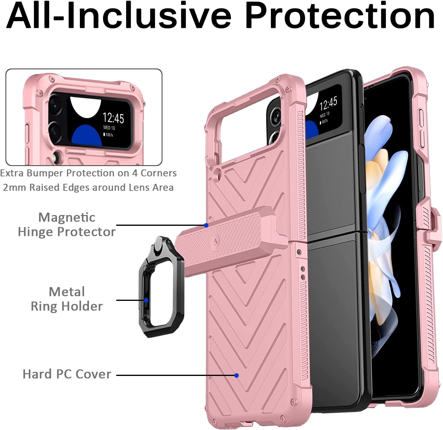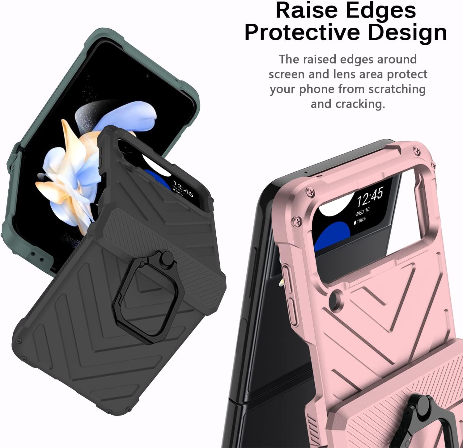 - [Kompatibles Modell] Dies robuste, Scharnierschutz Hülle mit Ringständer speziell Kompatibel mit Samsung Galaxy Z Flip 4 5G 2022 entwickelt. Bitte überprüfen Sie Ihr Handymodell vor dem Kauf.
