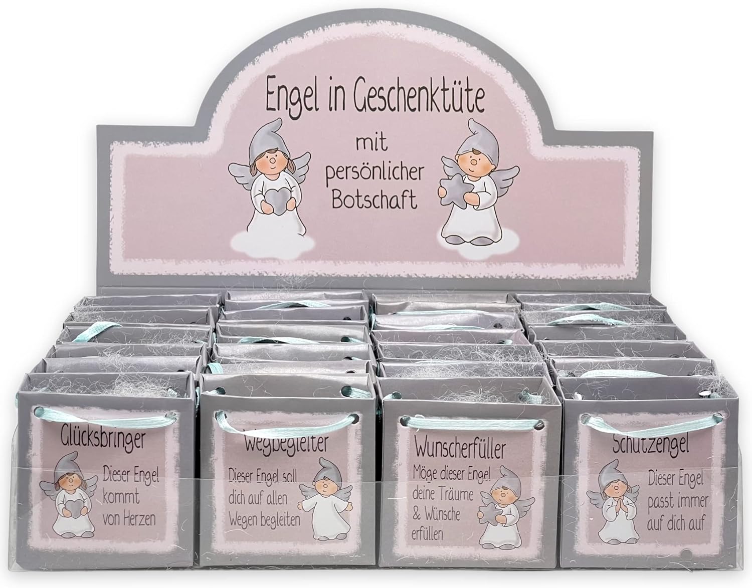 - 😇 24 Engelchen im Set mit Herz und Stern in Geschenktüten - spenden himmlischen Schutz und langwährenden Beistand, ideal als Glücksbringer zur Prüfung oder auch als Sorgenpüppchen für Kinder.