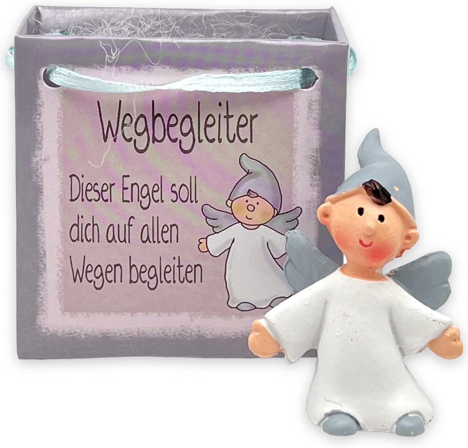 - 😇 Die Geschenktüten sind jeweils mit einem von zwei Sprüchen bedruckt: "Ein Engel ist jemand, den Gott dir ins Leben schickt, unerwartet und unverdient, damit er dir, wenn es dunkel ist, ein paar Sterne anzündet." und "Wenn kleine Engel winken und