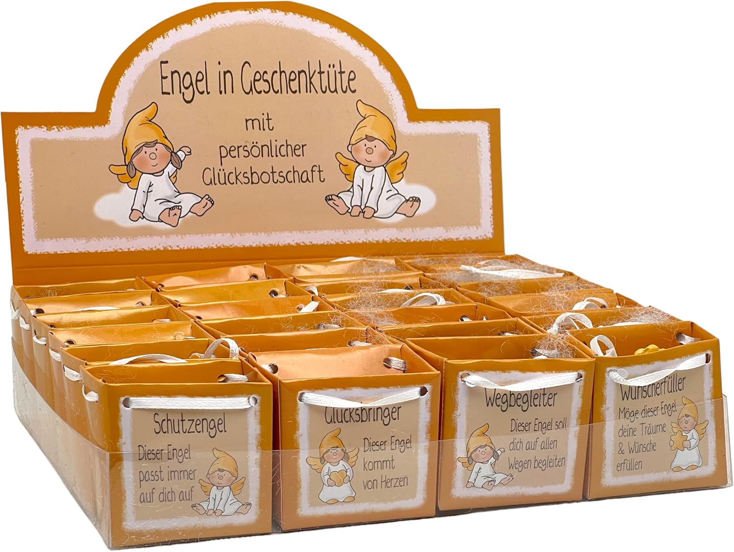 • 😇 Die Geschenktüten sind jeweils mit einem von vier Sprüchen bedruckt: "Dieser Engel passt immer auf Dich auf", "Dieser Engel kommt von Herzen", "Dieser Engel soll Dich auf allen Wegen begleiten" und "Möge dieser Engel deine Träume & Wünsche