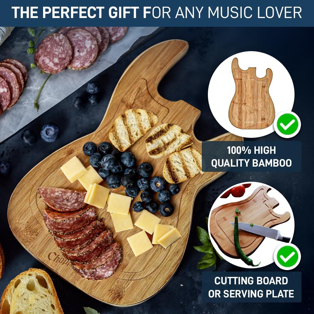 • GITARRENSCHNEIDPLATTE - Geeignet für die Zubereitung jeder Mahlzeit und das Schneiden von Speisen mit einem eingebrannten Logo