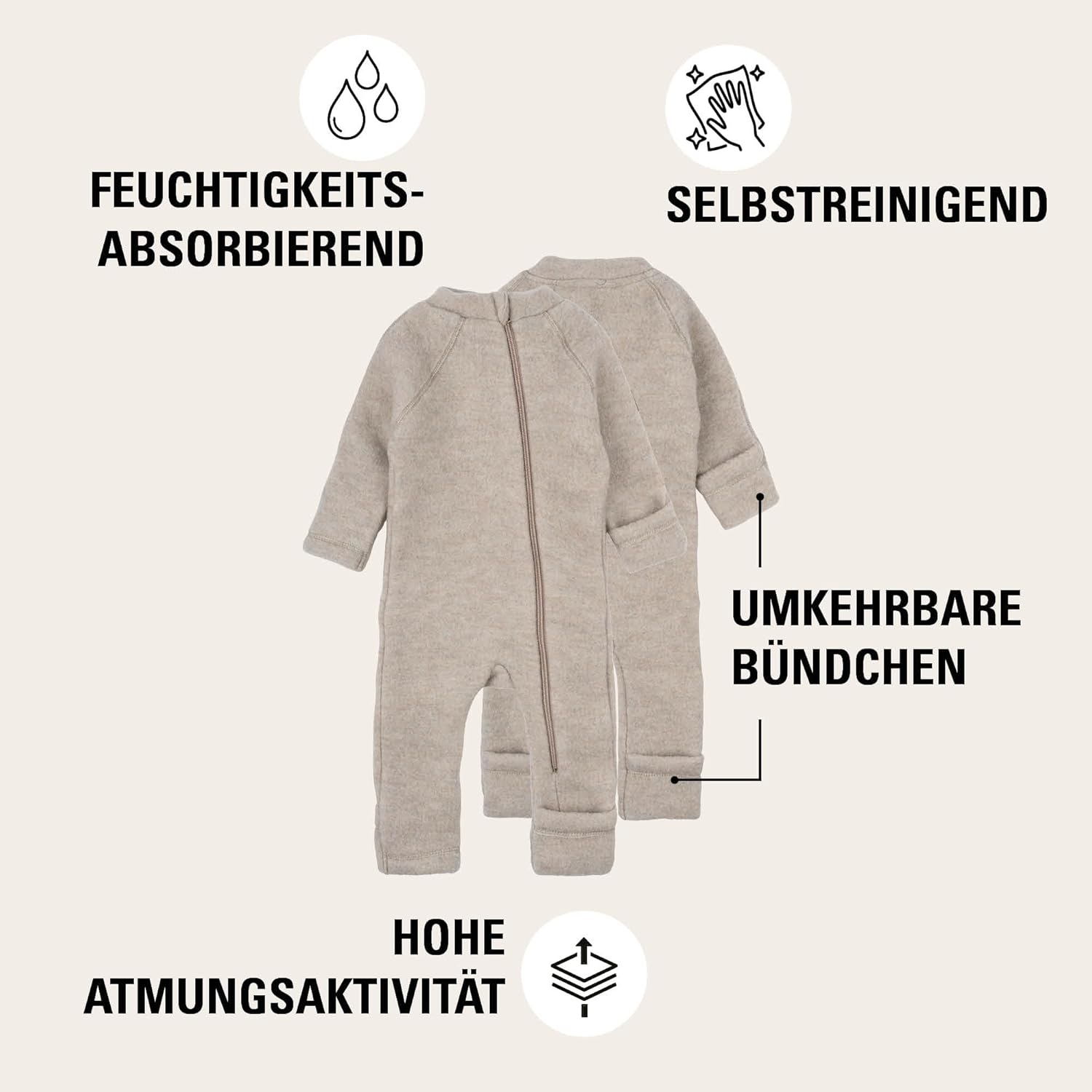 - Praktisches Design - Dank des langen Reissverschlusses von der Kragen bis zum Beinabschluss ist das An- und Ausziehen der Wollanzug sehr einfach. Dies spart Zeit und erleichtert das Wickeln, besonders bei unruhigen Babys.