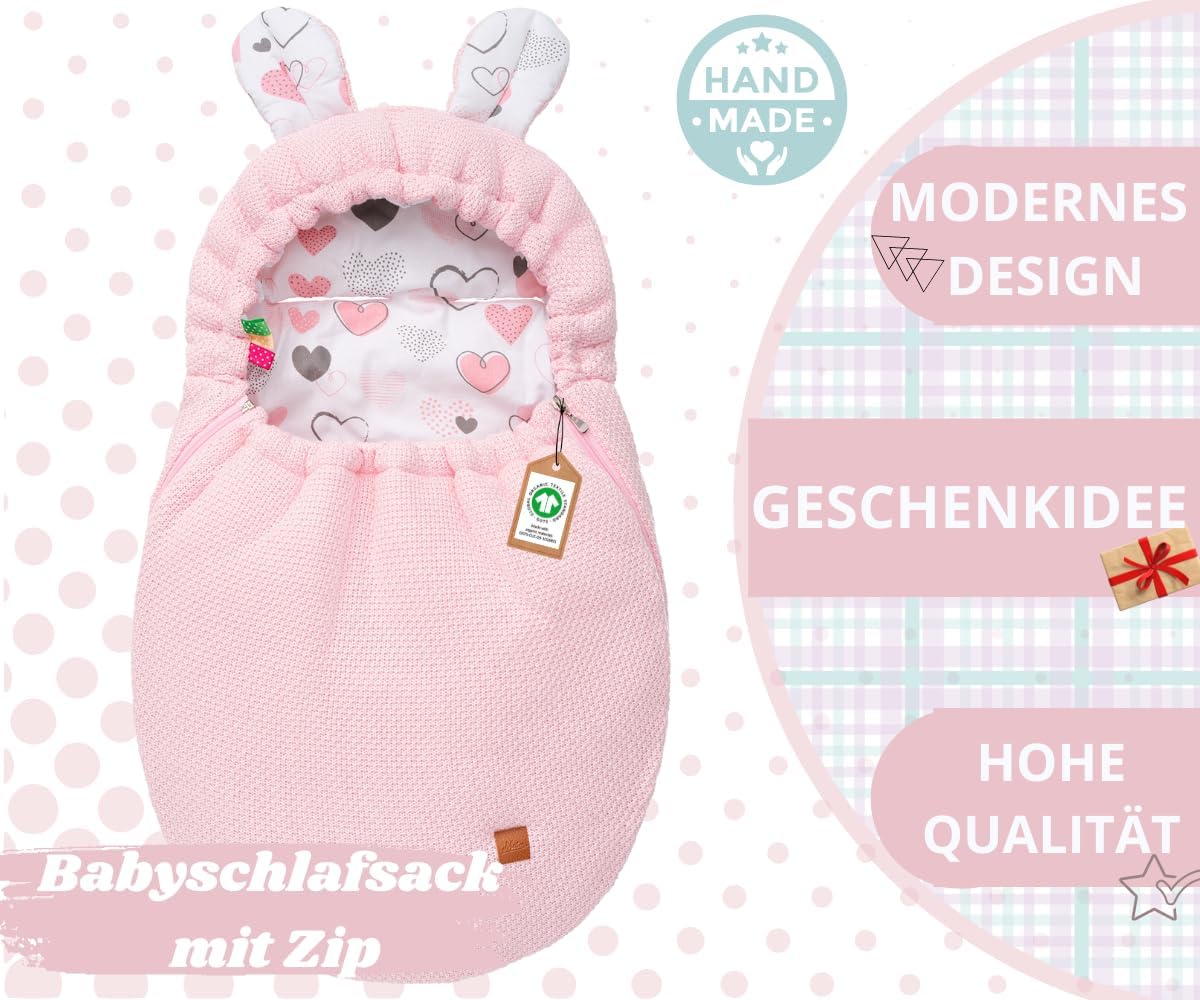 Mikos Einschlagdecke Babyschale Herbst Winter, Baby Fusssack mit Zip 100% Baumwolle GOTS Zert. Stric