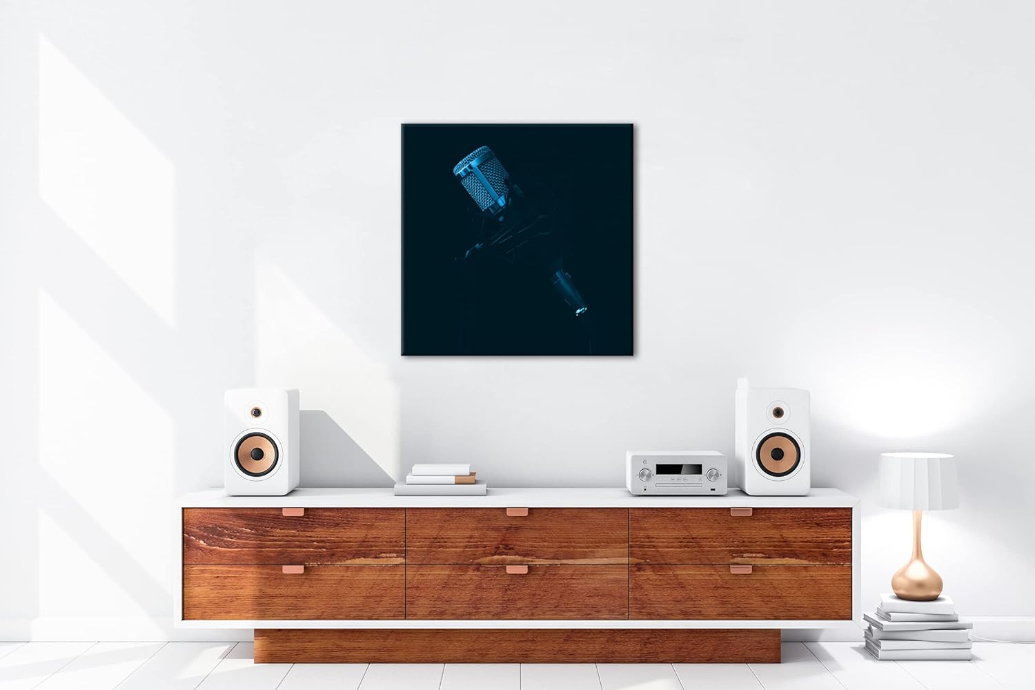Mikrofon im dunklen Tonstudio Format: 70x70 Effekt: Monocrome Blau als Leinwand, Motiv fertig gerahm
