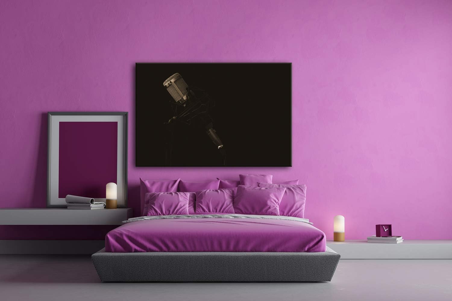 Mikrofon im dunklen Tonstudio Format: 80x60 Effekt: Sepia als Leinwand, Motiv fertig gerahmt auf Ech