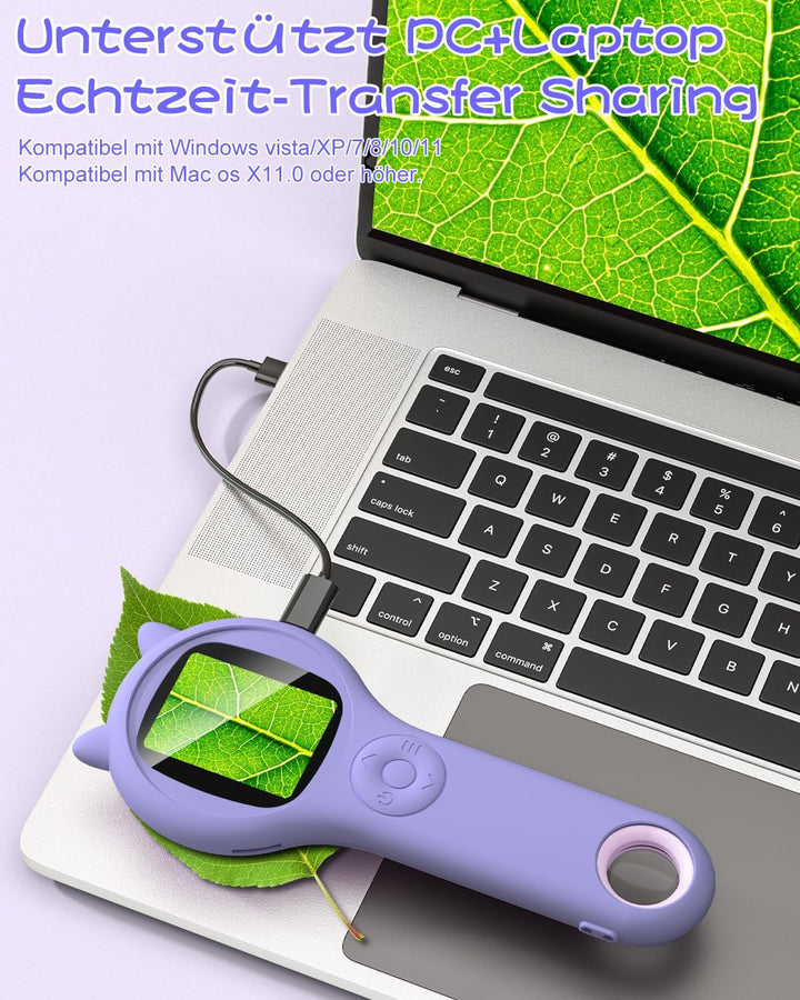- Tragbares Digital mikroskop: Dieses tragbare MiniMikroskop ist ein praktisches und tragbares Lehrmittel für Kinder, die die Wissenschaft und die Erforschung der mikroskopischen Welt lieben. Mit einem Gewicht von nur 60 g ist es dank der mattierten