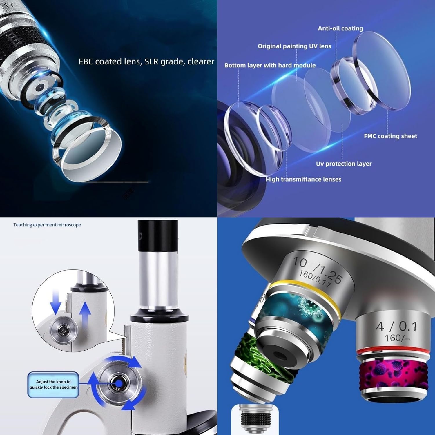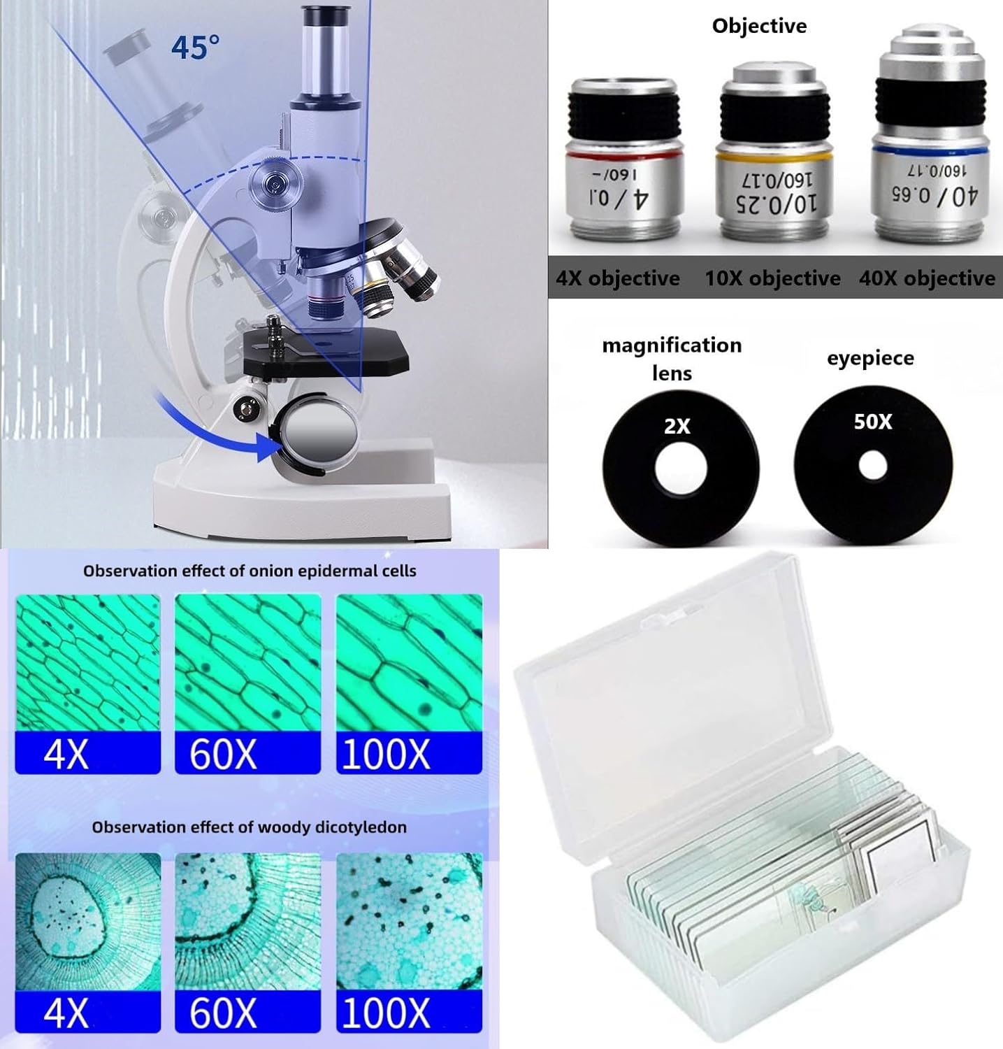 - Optische Mikroskop-Vergrösserung: 200X, 400X, 500X, 1000X, 2000X, 4000X. Hochwertiger Zoom mit 185 achromatischem Objektiv kann sehr klare und scharfe Bilder liefern. Bietet Ihnen eine grosse Sicht und eine komfortable Erfahrung beim Anschauen.