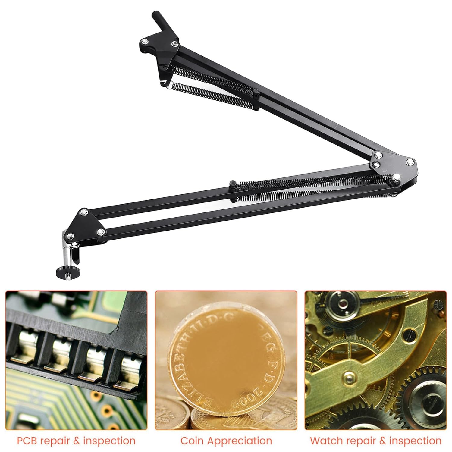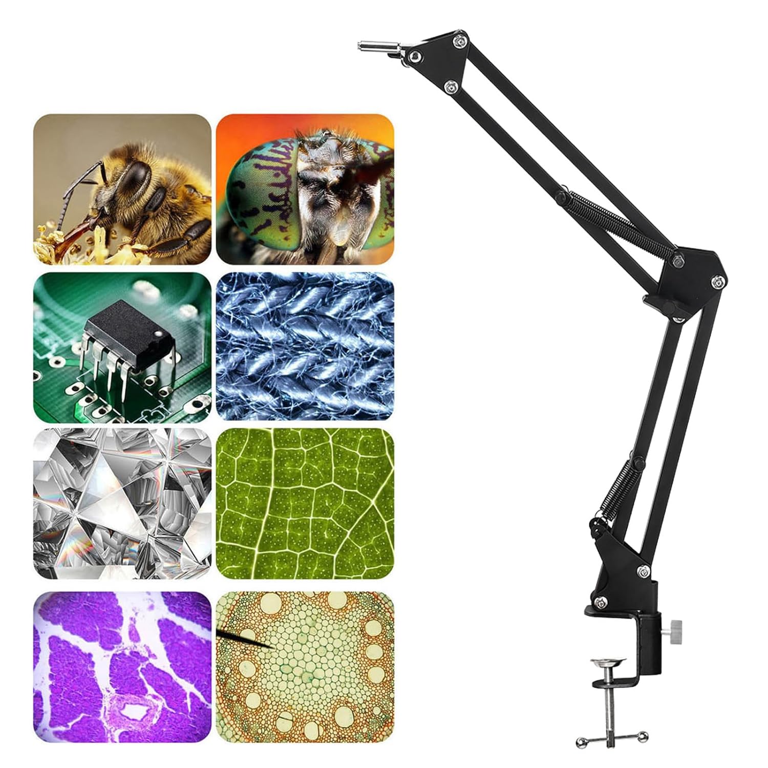 - 【Flexibel und verstellbar】 Der robuste, um 360° drehbare, flexible Arm mit Klemme und Begrenzungsring ermöglicht ein einfaches Schwenken des Mikroskops bei Bedarf und bei Nichtgebrauch, und der Metallhalter kann die Höhe des Mikroskopobjektivs