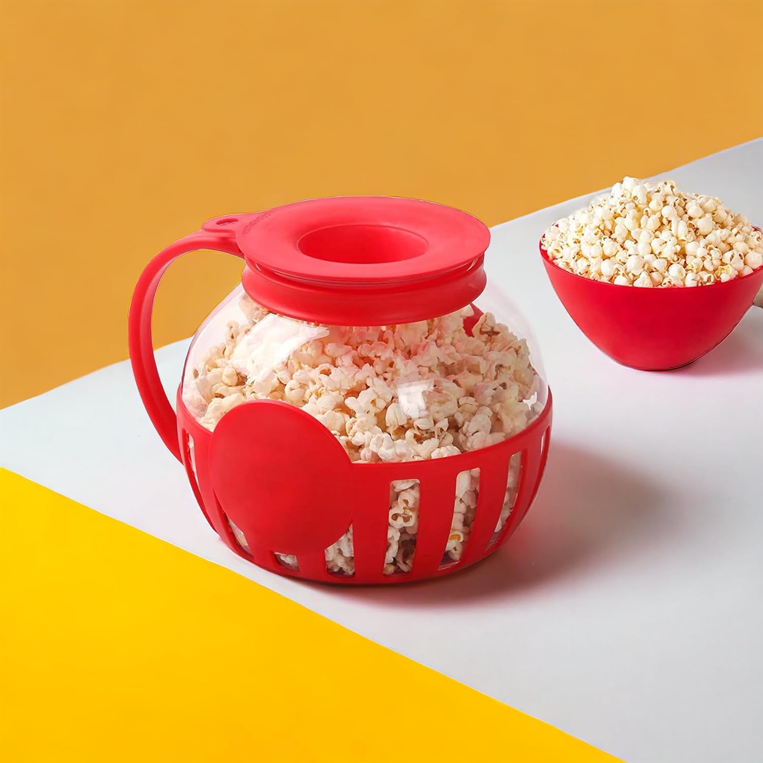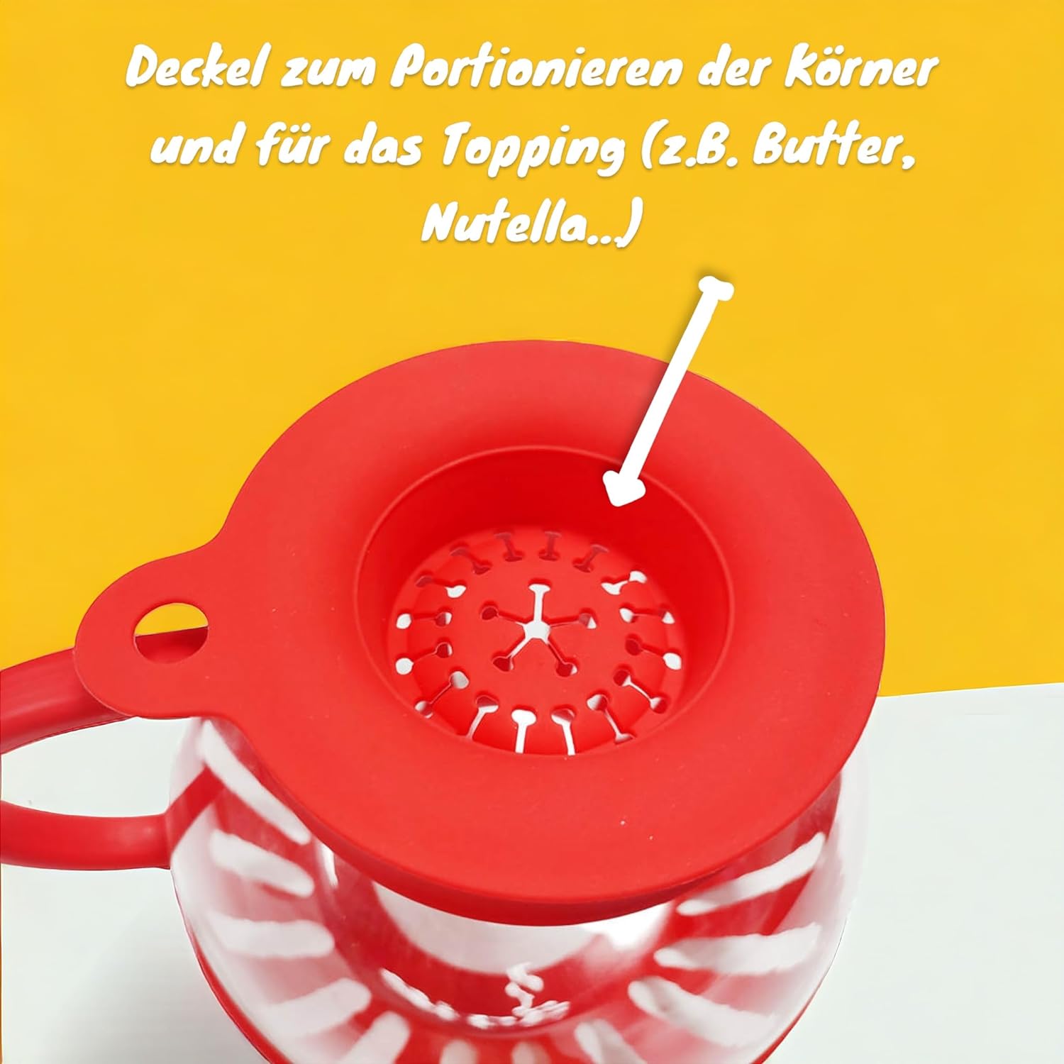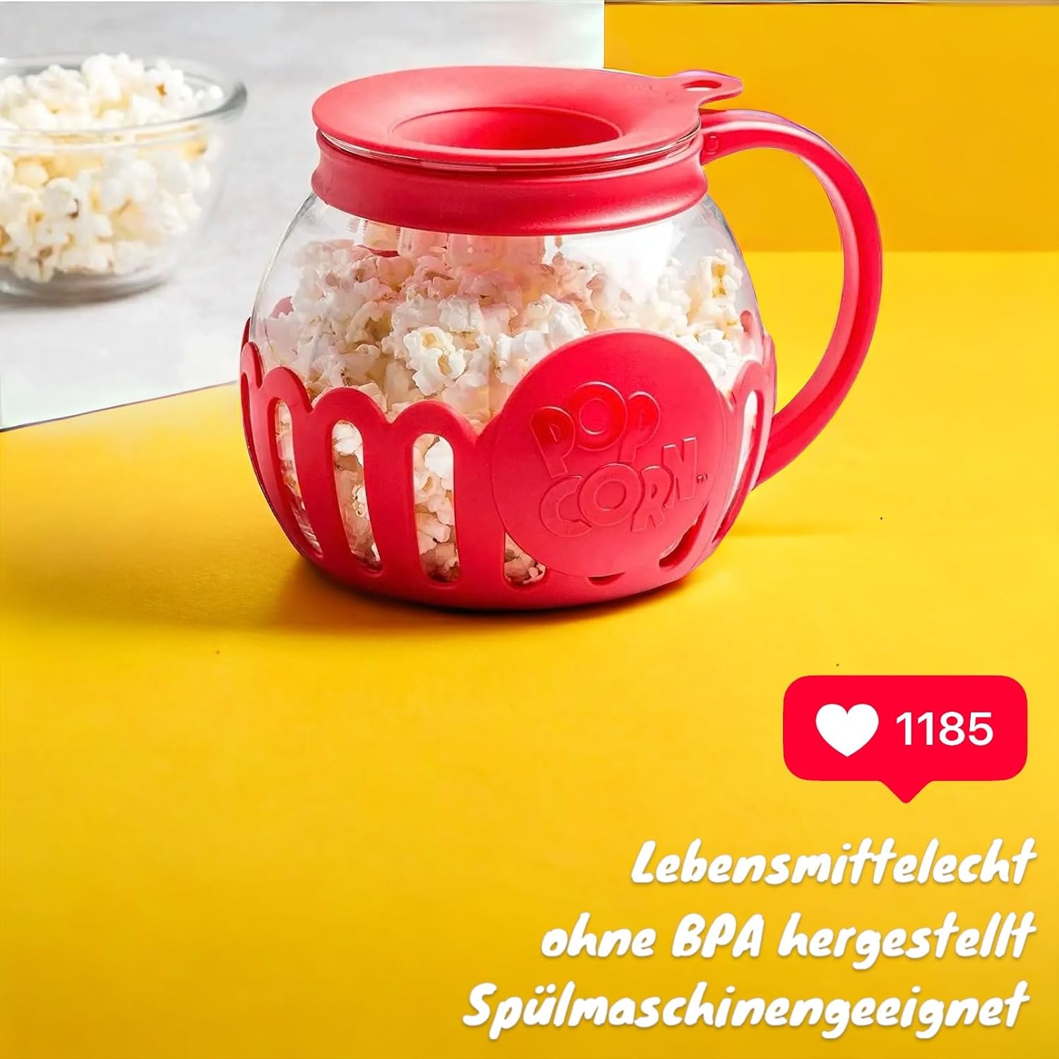 Mikrowellen-Popcorn-Maker aus Premium-Glas ohne BPA spülmaschinenfest, 3 in 1 Silikondeckel, gesunde