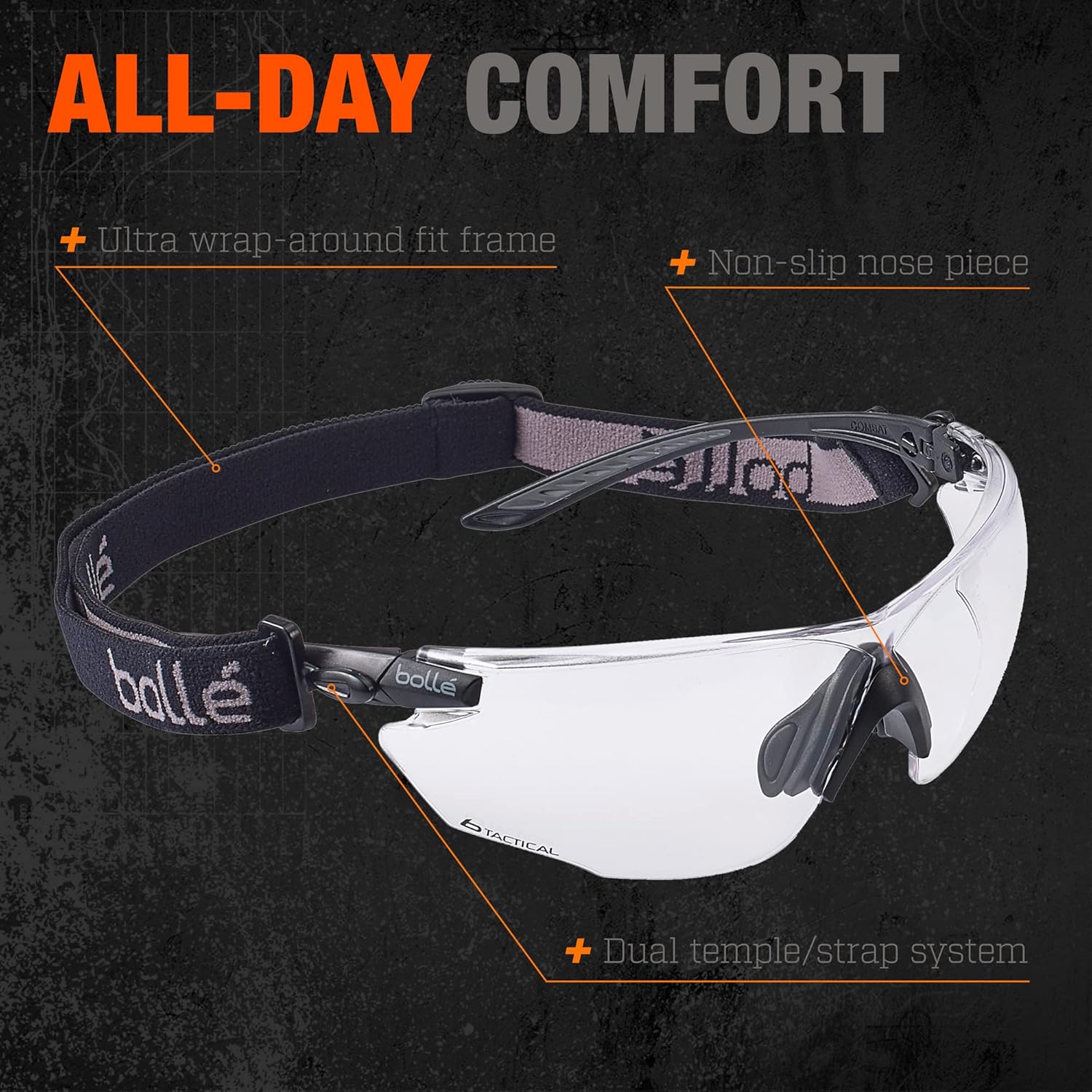 PRODUKTBESCHREIBUNGEN Die Bollé Combat gehört zur neuesten Generation ballistischer Hybridbrillen. Es hat ein verstellbares Kopfband (22 mm breit), das eine perfekte Passform bietet. Ihre platinbeschichteten Linsen sorgen für eine erhöhte Kratz- und Beschlagfestigkeit. Das modulare System umfasst austauschbare Wechselobjektive, damit Sie für jede Situation gerüstet sind. Die CSP-Beschichtung schützt Ihre Augen besonders bei wechselndem Licht und in Gegenden mit extrem kalten oder heissen Temperaturen.