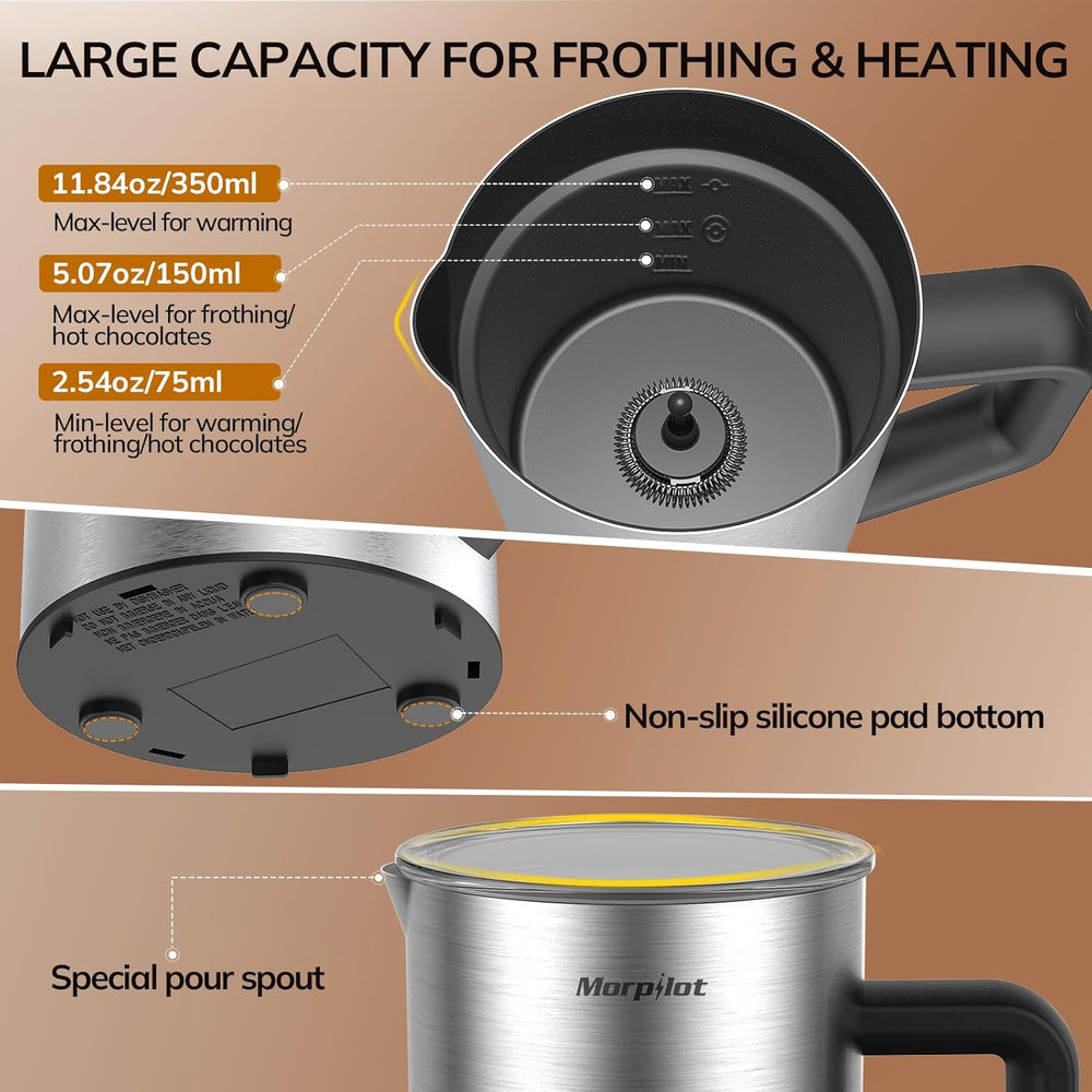 - ☕【Grosszügige Kapazität】Mit einer Heizkapazität von bis zu 350 ml Milch und einer Schaummenge von 150 ml erfüllt dieser Milchaufschäumer auch grössere Bedürfnisse, ideal zum Teilen mit Familie und Freunden. Dank der Messlinien im Inneren