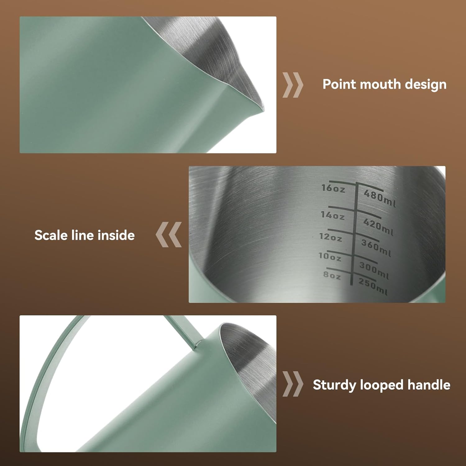 - 480 ML FASSUNGSVERMÖGEN MILCHAUFSCHÄUMER KANNE: Dieser Kaffee-Milchaufschäumbecher hat ein grosses Fassungsvermögen von 480 ml und bietet Platz für mehr Milchkaffee, wodurch er den Bedürfnissen der meisten Getränke gerecht wird. Langsames,