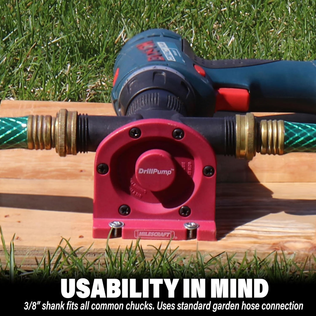 - Die Bohrerpumpe lässt sich nicht von Hand drehen, sie muss an der Bohrmaschine befestigt werden