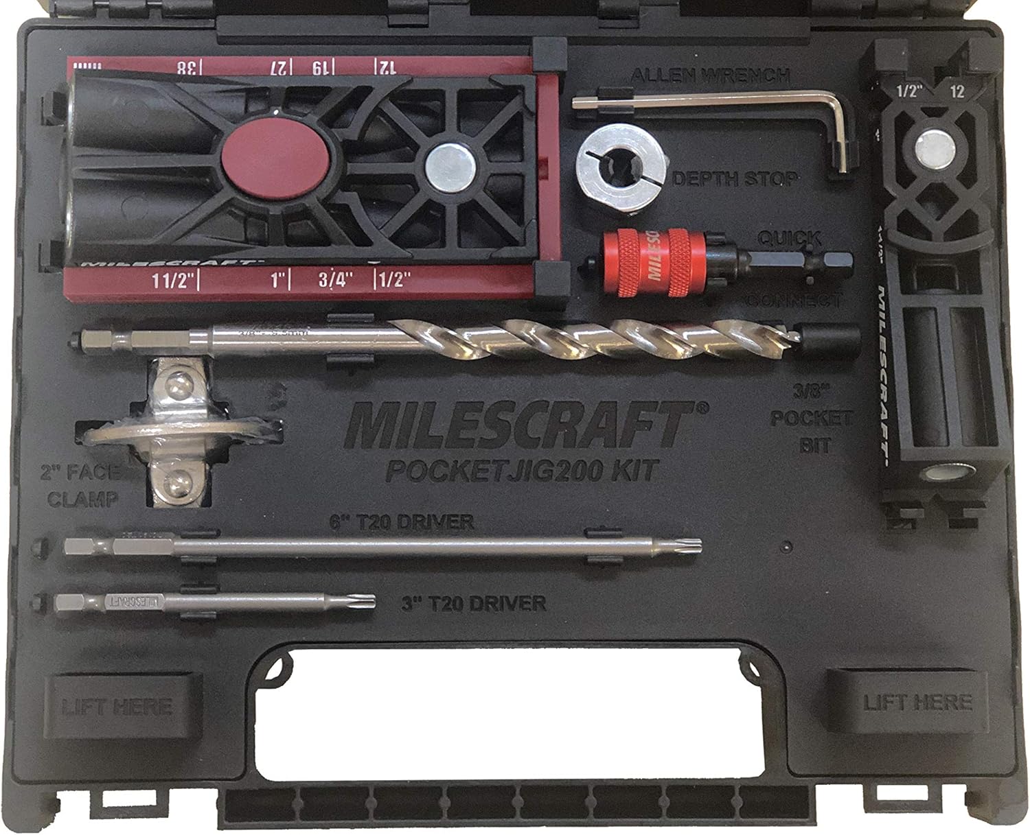 - Es gibt vier gängige Brettdickeneinstellungen in die Taschenvorrichtung integriert: 1,27 cm, 1,9 cm, 2,5 cm und 3,8 cm