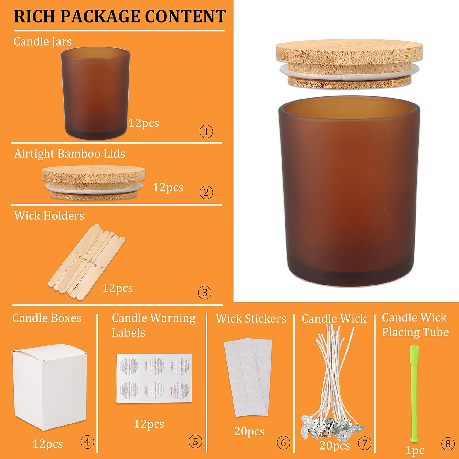 • ▶️ Kaufen Sie es und Sie erhalten: 12 Stück mattierte bernsteinfarbene Gläser mit luftdichtem Bambusdeckel, 20 Stück Kerzendochte, 20 Stück Kerzendocht-Aufkleber, 20 Stück Dochthalter, 12 Stück Kerzen-Warn-Etiketten, 12 Stück Kerzen-Boxen, 1