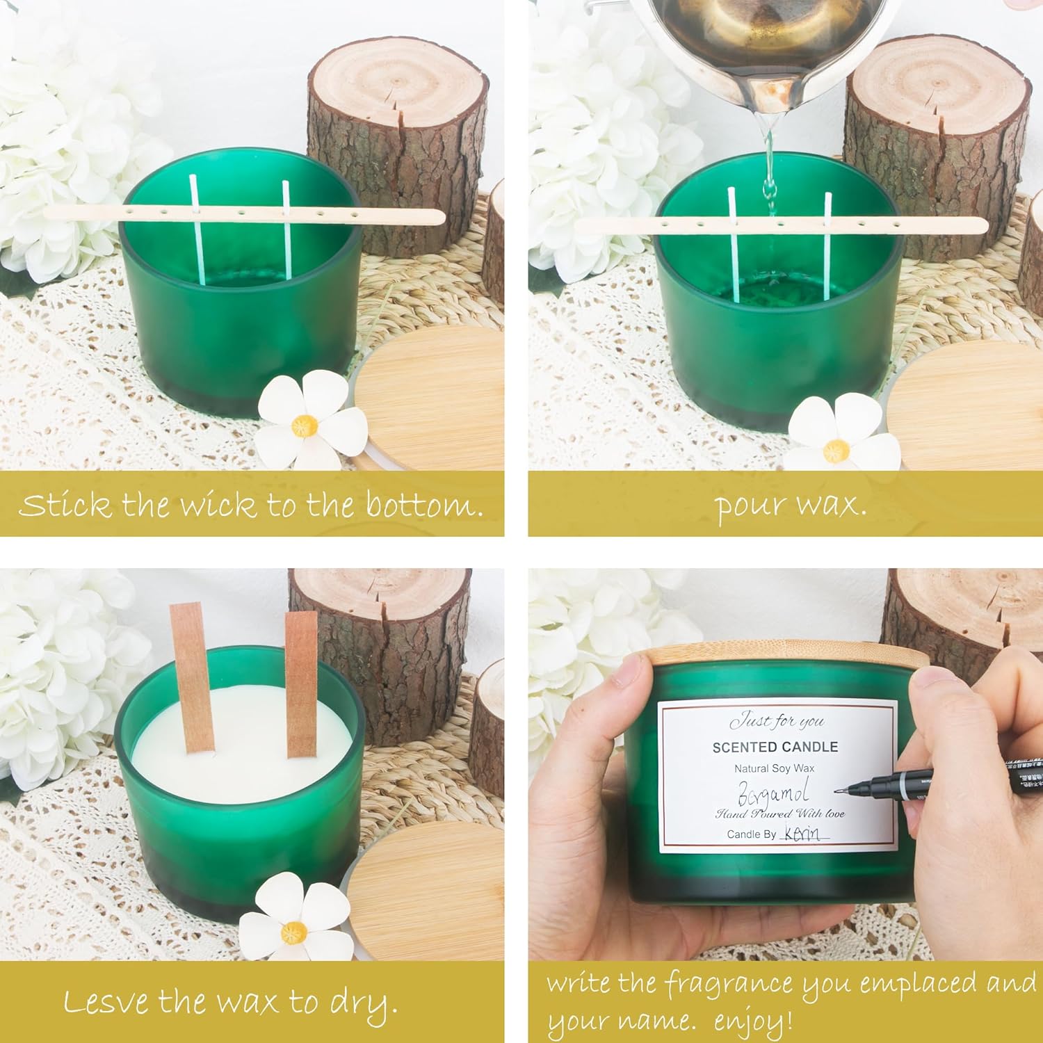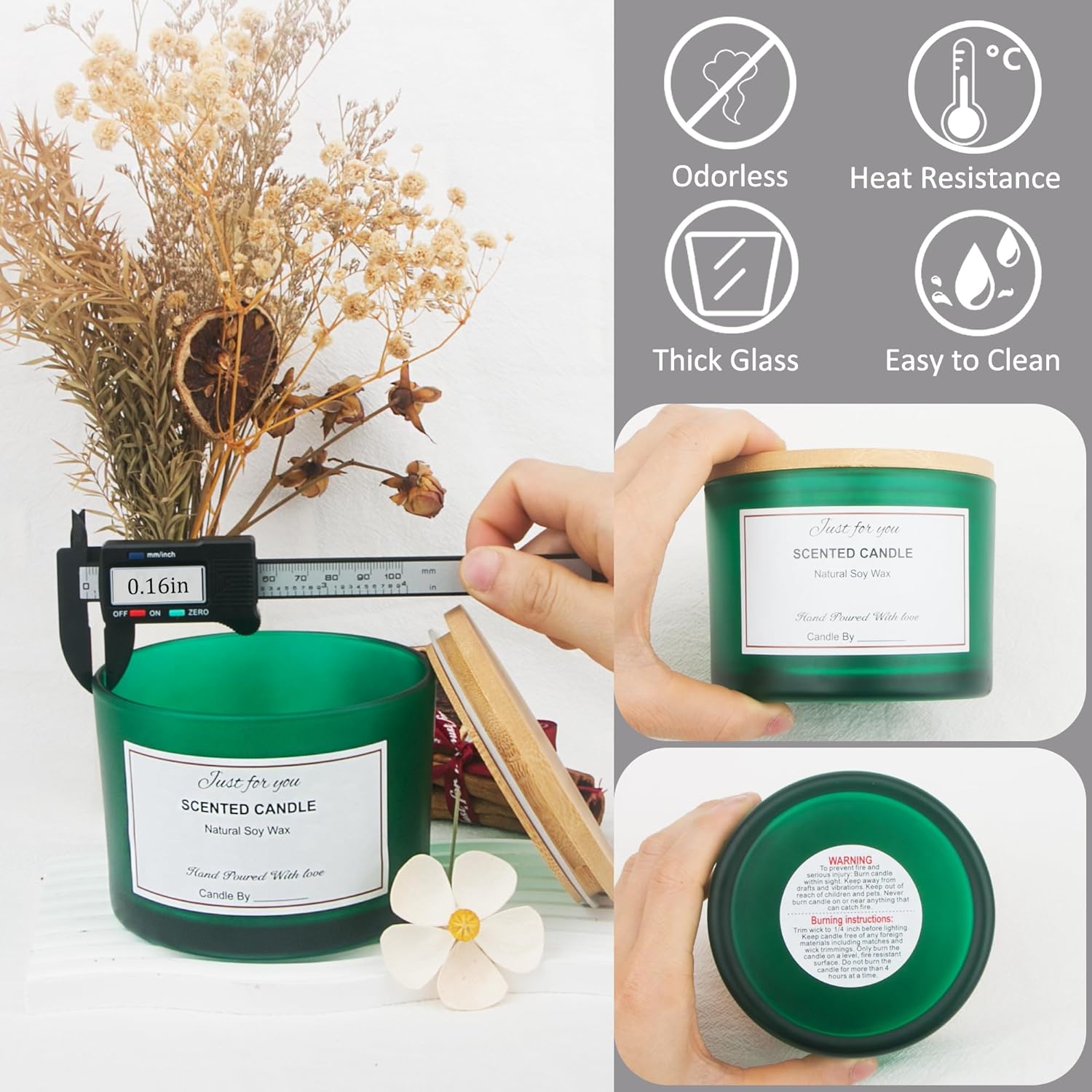- Kaufen Sie es und Sie erhalten: 6 Stück breite Öffnung, 473 ml, mattgrüne Gläser mit luftdichtem Bambusdeckel, 20 Stück 8,9 cm Kerzendocht-Aufkleber, 6 Stück 7-Loch-Holzkerzendochthalter, 6 Stück Kerzenwarn-Etiketten, 1 Stück