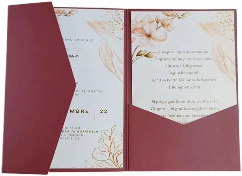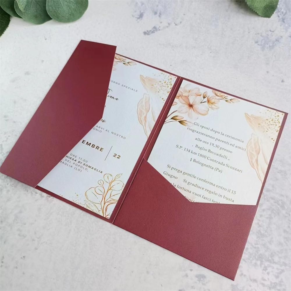 • Hochzeitseinladungspapier Burgunderrot, geeignet für Hochzeit, Geburtstag, Brautparty, 16. Geburtstag, Abschlussfeier, Einladung zur Firmenfeier.