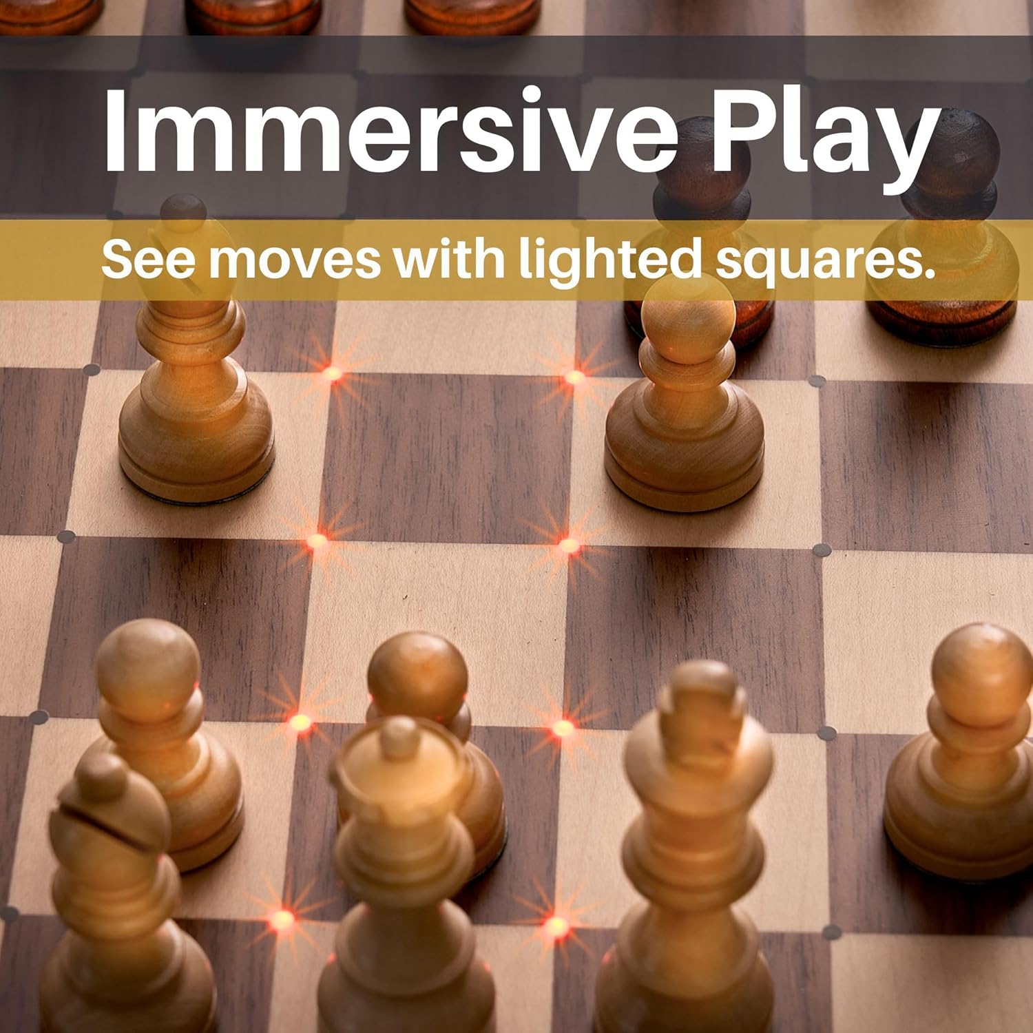 • [LEDS ZUR ZUGANZEIGE] Insgesamt 81, praktisch unsichtbar in das Board eingelassene LEDs, zeigen Ihnen die Züge des Gegners direkt auf dem Brett an – genauso wie Tipps und Stellungsfehler. Während des Spiels ist also kein Blick auf das Display nötig.