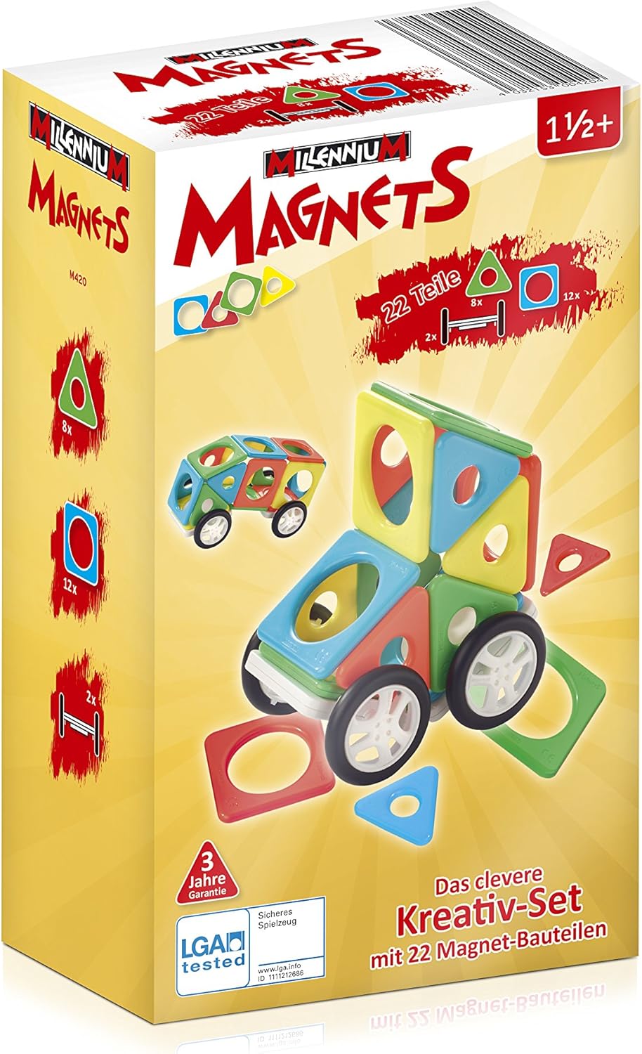 - Das clevere Kreativ-Set mit 22 Magnet- Bauteilen (12 Quadrate, 8 Dreiecke & 2 Achsen)