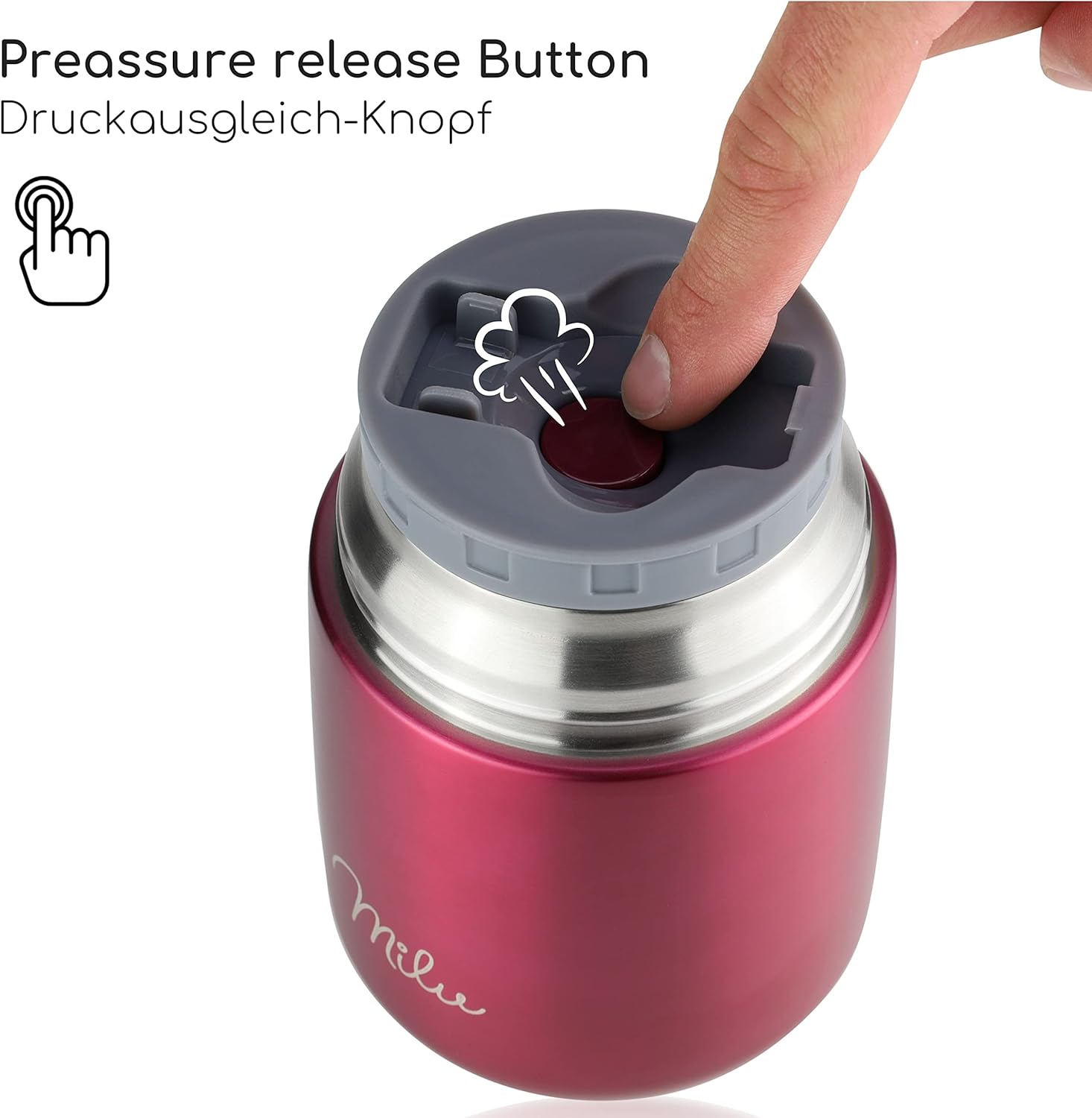 - FUNKTIONALITÄT: Leichtes Öffnen durch Druckablassventil. Schulkinder freuen sich, wenn alles mühelos funktioniert. Rutschfester Boden sorgt für sicheren Stand und Dichtungsring für trockenen Transport in Taschen. 100 % auslaufsicher.