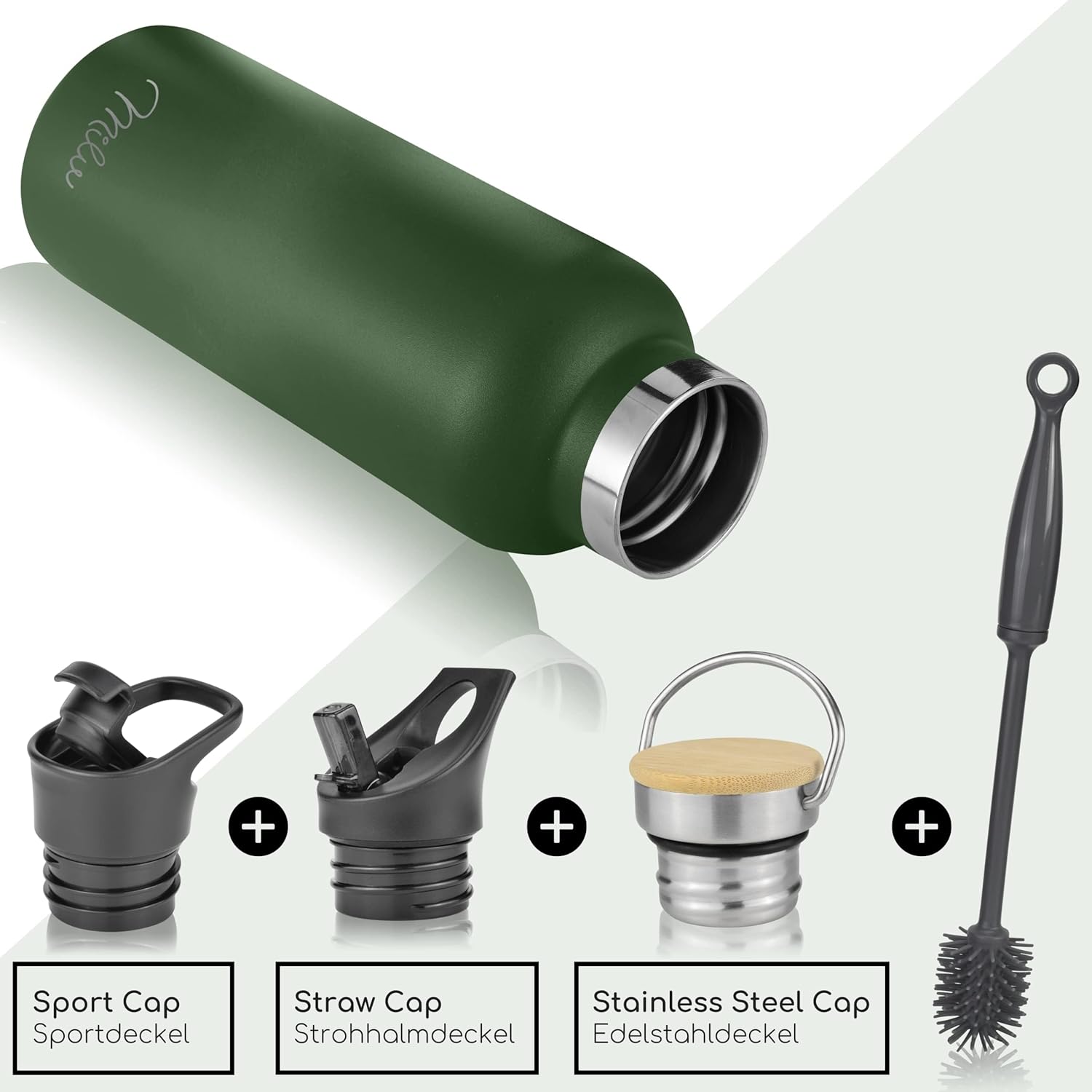 - EXTRAS: Damit du möglichst lange Freude an der Trinkflasche hast, erhältst du dazu eine Bürste zur einfachen Reinigung, sowie Ersatzstrohhalme.