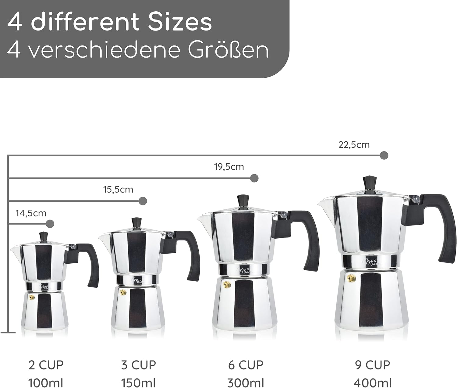 - QUALITÄT: Die Milu Espressokanne besteht aus lebensmittelechtem Aluminium und ist dadurch besonders hitzebeständig und für die Ewigkeit gemacht