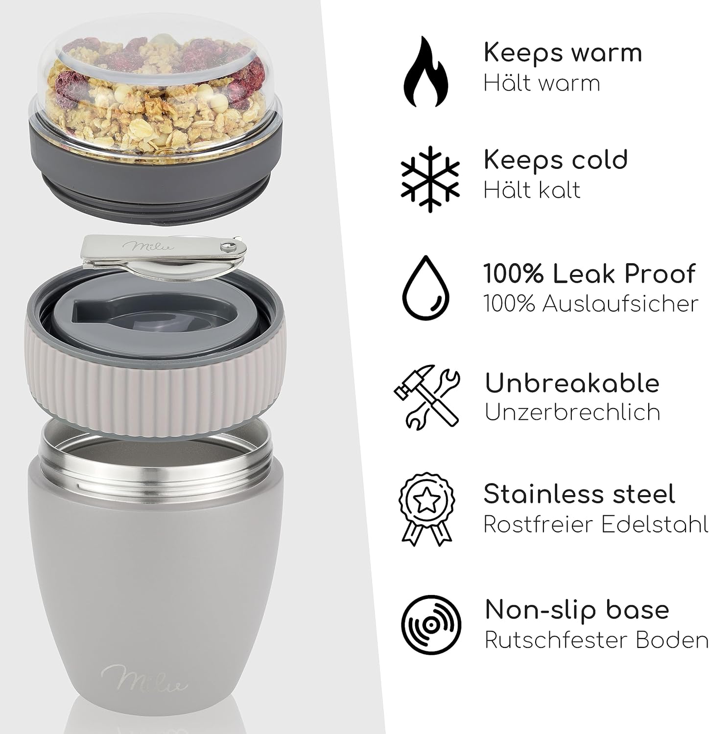 - SPITZENQUALITÄT: Milu verwendet hochwertigen und rostfreien 304 Edelstahl, welcher frei von Schadstoffen, sowie geruchs- und geschmacksneutral ist. Für dich gesundheitlich völlig unbedenklich und wir schonen alle damit unsere Umwelt.