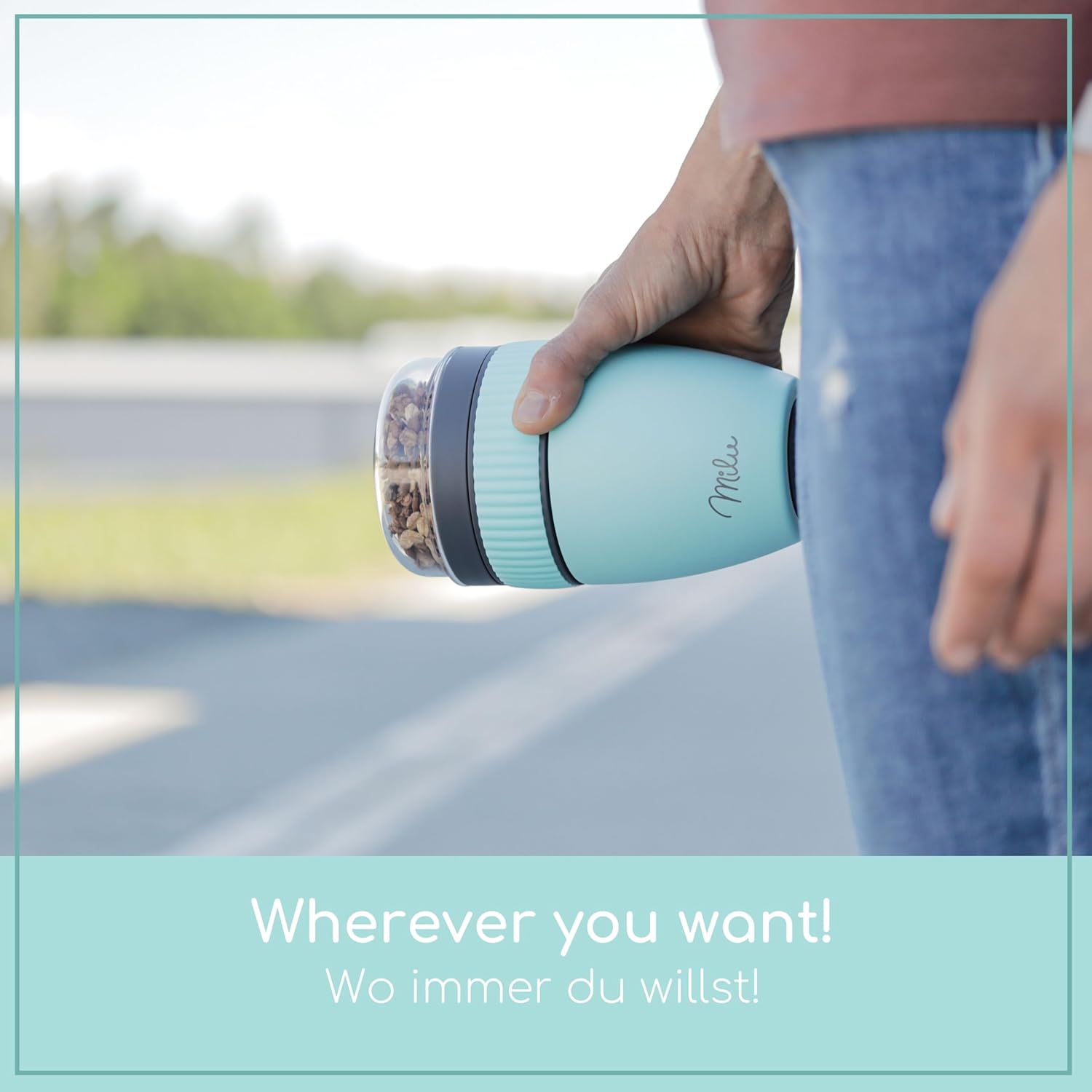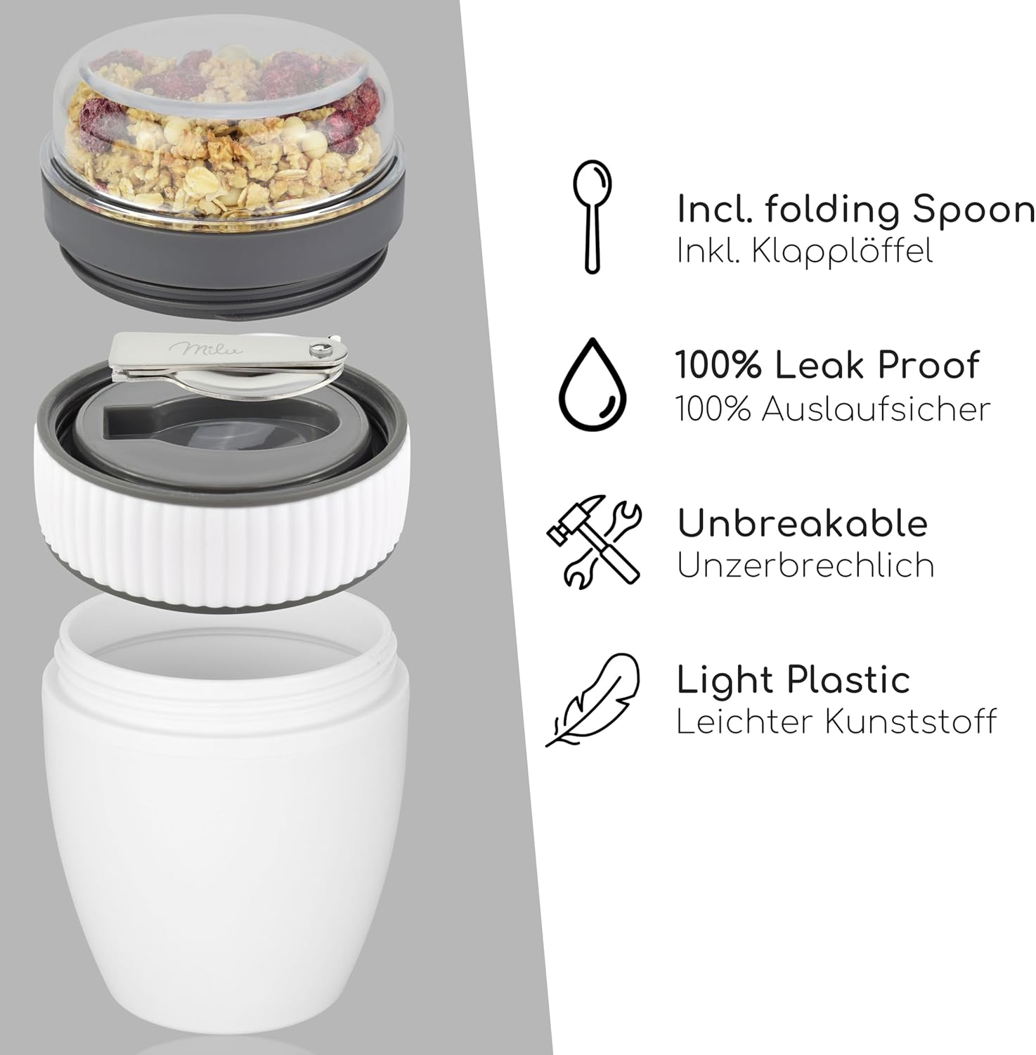 - LÖFFEL INKLUSIVE - Der MüsliMax Müslibehälter wird mit einem praktischen Edelstahl Faltlöffel geliefert. So können Sie Ihr Joghurt, Porridge, Suppen, Salate oder Snacks überall geniessen!