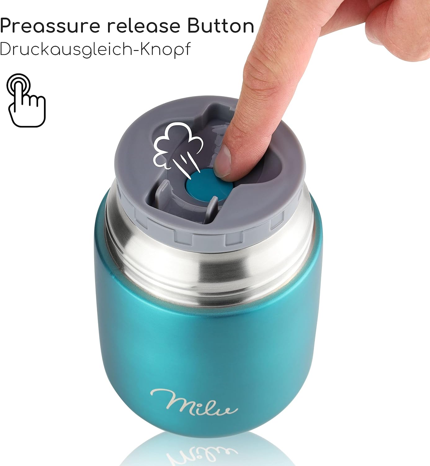 - FUNKTIONALITÄT: Leichtes Öffnen durch Druckablassventil. Schulkinder freuen sich, wenn alles mühelos funktioniert. Rutschfester Boden sorgt für sicheren Stand und Dichtungsring für trockenen Transport in Taschen. 100 % auslaufsicher.