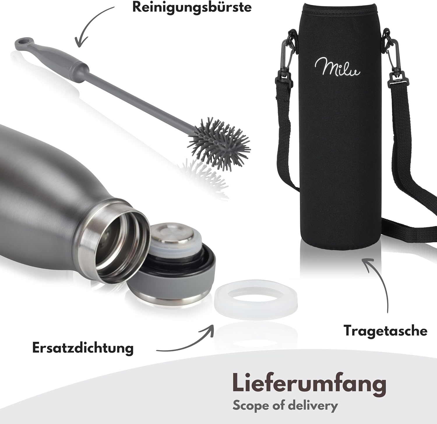 Milu Thermoflasche 350ml 500ml 750ml 1L 1,5L Isolierte Edelstahl Trinkflasche Thermoskanne Auslaufsi