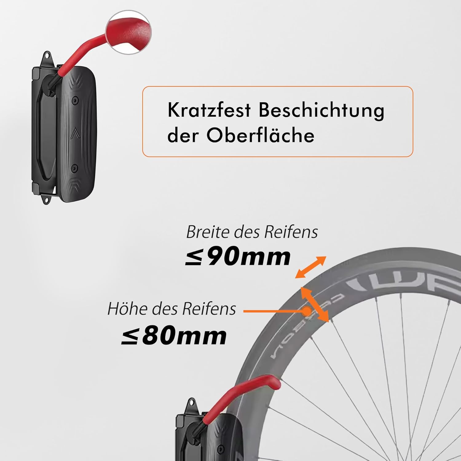 - Schutzbeschichtung und Polsterung: Die Halterung verfügt über eine Schutzbeschichtung und eine Gummipolsterung, die nicht nur die Integrität des Fahrradrahmens schützen, sondern auch Kratzer und Schäden an der Wand verhindern. Dieser durchdachte