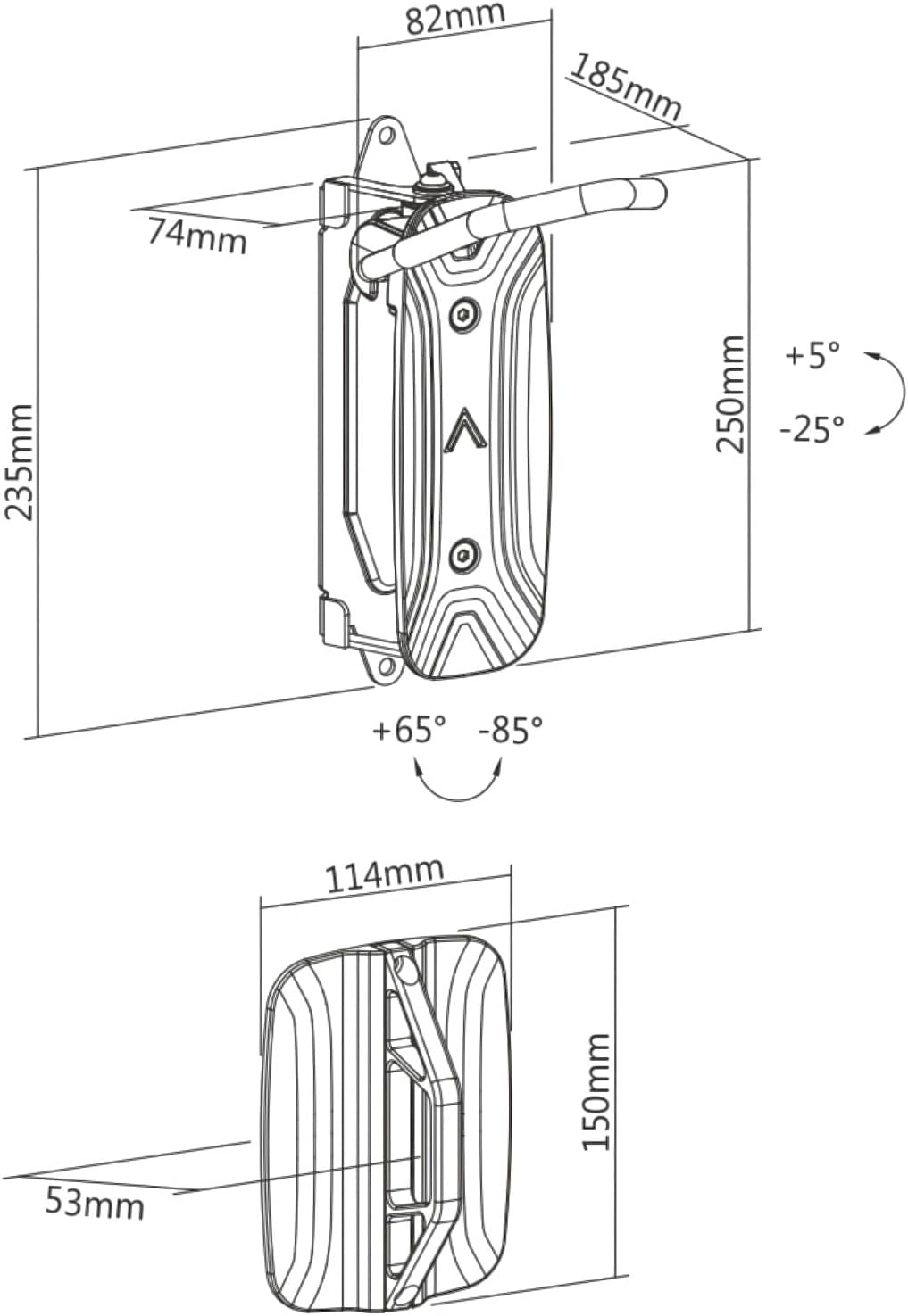 - Drehbarer Mechanismus: Dieser Fahrradträger verfügt über eine einzigartige drehbare Halterung, mit der Sie Ihr Fahrrad nahe an der Wand schwenken können, um zusätzlich Platz zu sparen. Diese Funktion ist besonders praktisch in engen Räumen, da sie