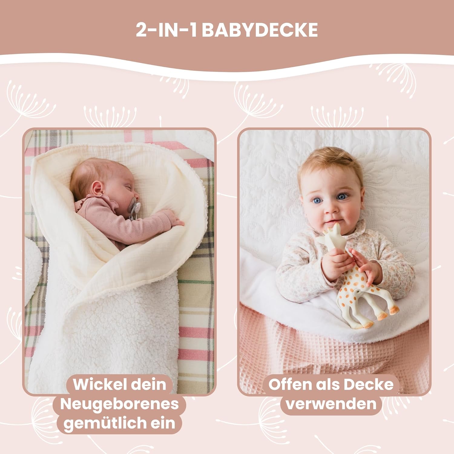 • 2 IN 1: BAUMWOLLE BABYDECKE UND KUSCHELDECKE BABY - Diese multifunktionale babydecke winter kann sowohl als dicke baby decke im Alltag als auch als kuscheldecke baby baumwolle für zusätzlichen Komfort und Wärme genutzt werden. Kompakt und praktisch,