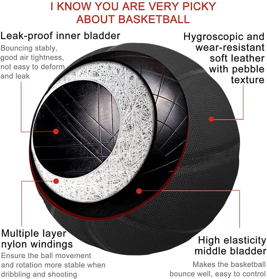 - ★Die Oberfläche des Basketballs besteht aus grossen Partikeln, die die beste Haftung beim Pitchen, Passen und Dunken bieten. Geprägte Gummioberfläche, guter Grip, weicher, leiser Rückprall, für gutes Handling und perfektes taktiles Erlebnis.