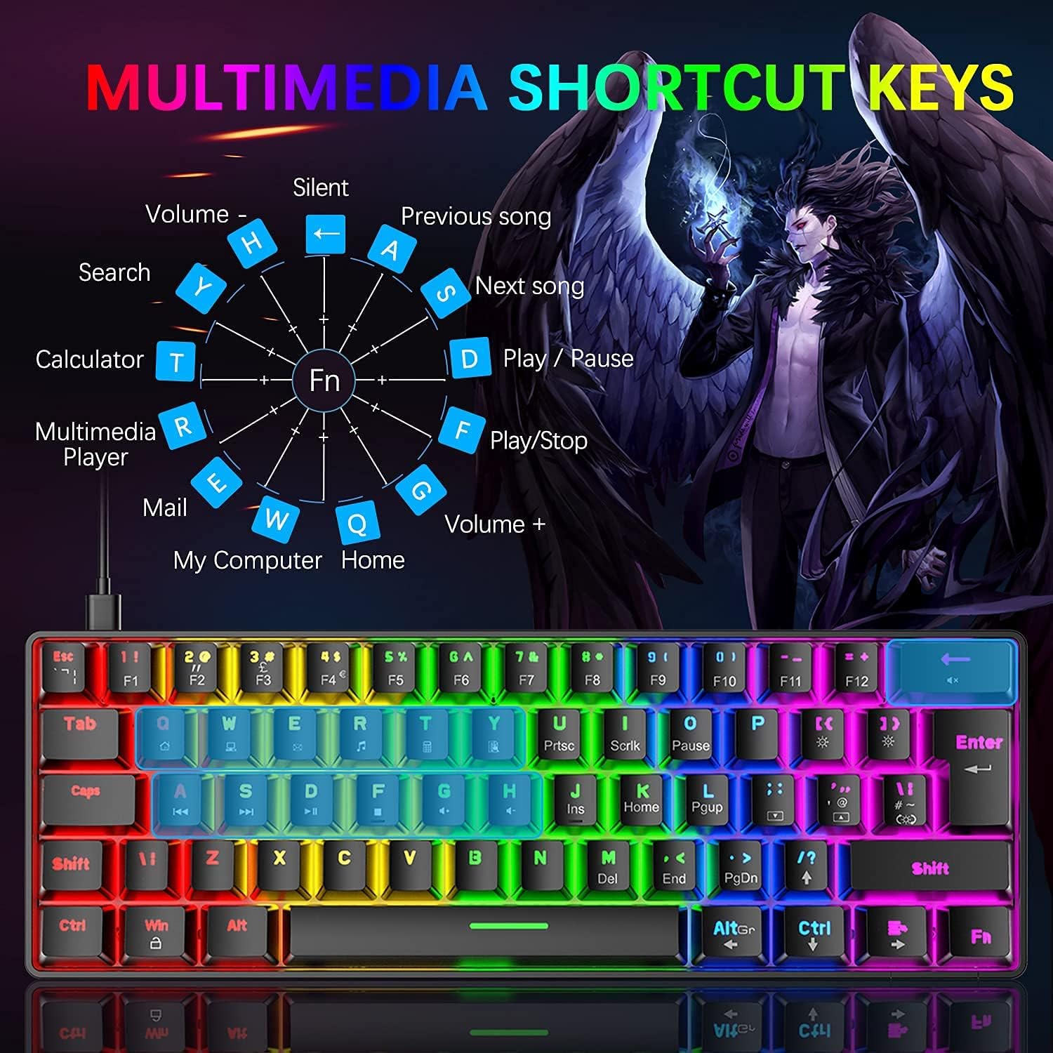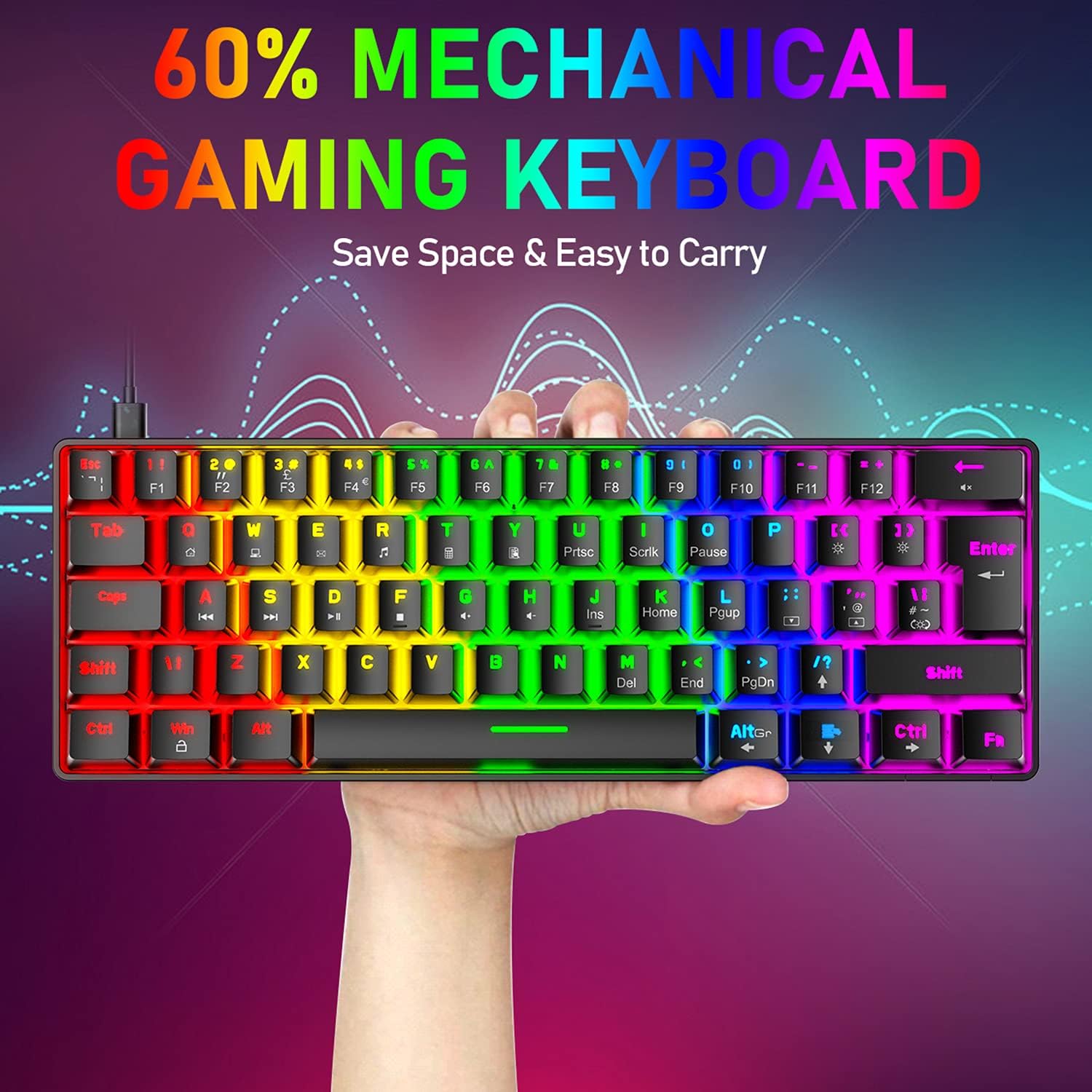 - 【60% Gaming-Tastatur】 Diese kabelgebundene Gaming-Tastatur ist eine Tastatur mit britischem Layout. Die 60% mechanische Tastatur hat ein kompaktes 62-Tasten-Design, das leicht, klein, einfach im Aussehen und bequem zu bedienen ist. Geben Sie Ihrem