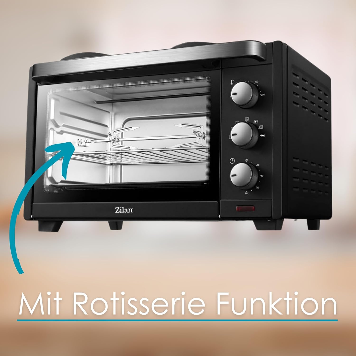 - ✔️ Dieser geniale Mini Backofen lässt keine Wünsche mehr offen. Kompaktes Design, einfache Bedienung, 3200 Watt und viele Extras wie Ober- und Unterhitze, eine stufenlose Temperatureinstellung, Rotisserie und ein eingebauter 60 Minuten Timer