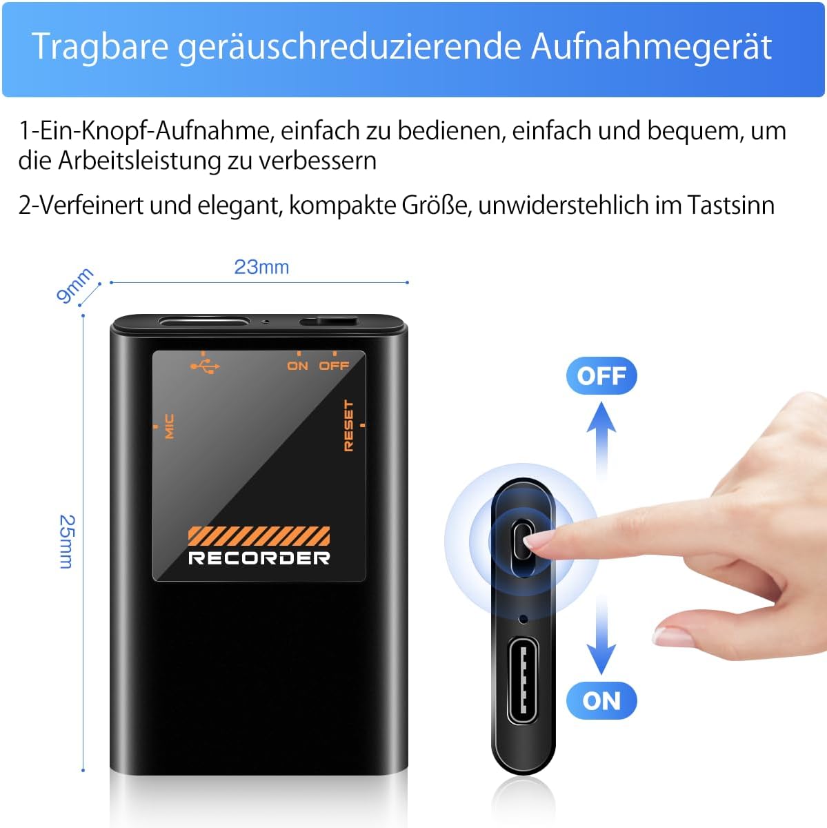 - 【Ein-Knopf-Bedienung & automatische Zeitstempel】Einfacher geht es nicht! Ein einziger Tastendruck startet und stoppt die Aufnahme. Beim Ausschalten wird automatisch gespeichert. Jede Datei erhält einen präzisen Zeitstempel – so finden Sie