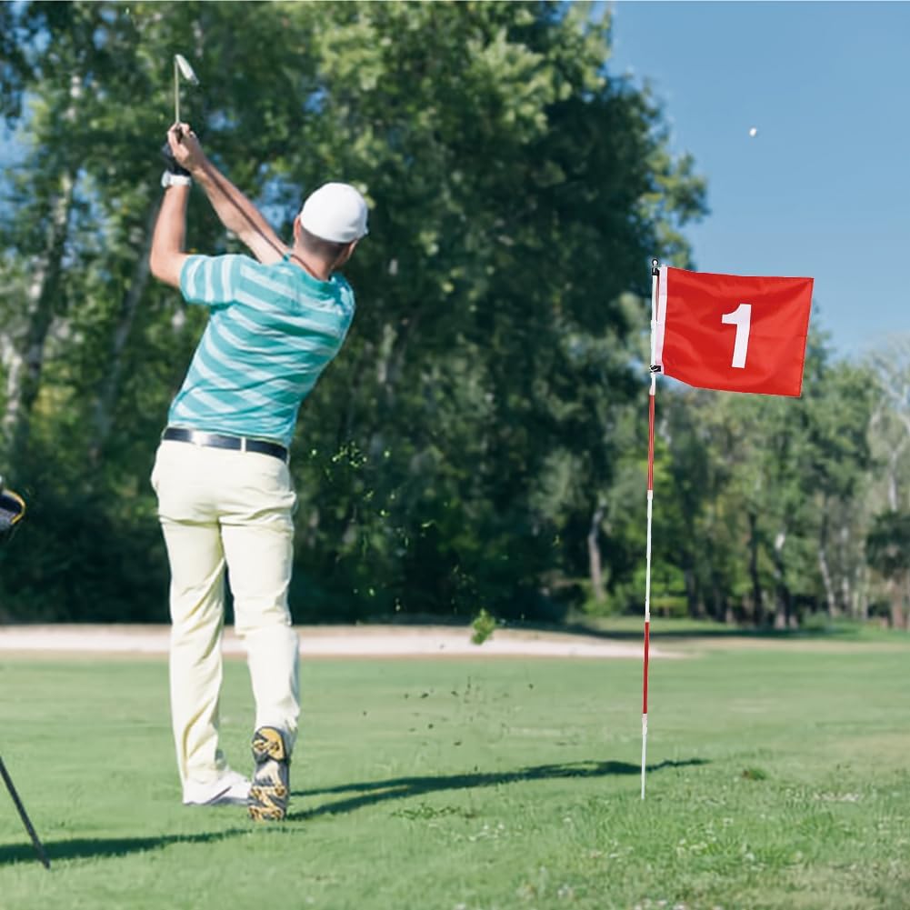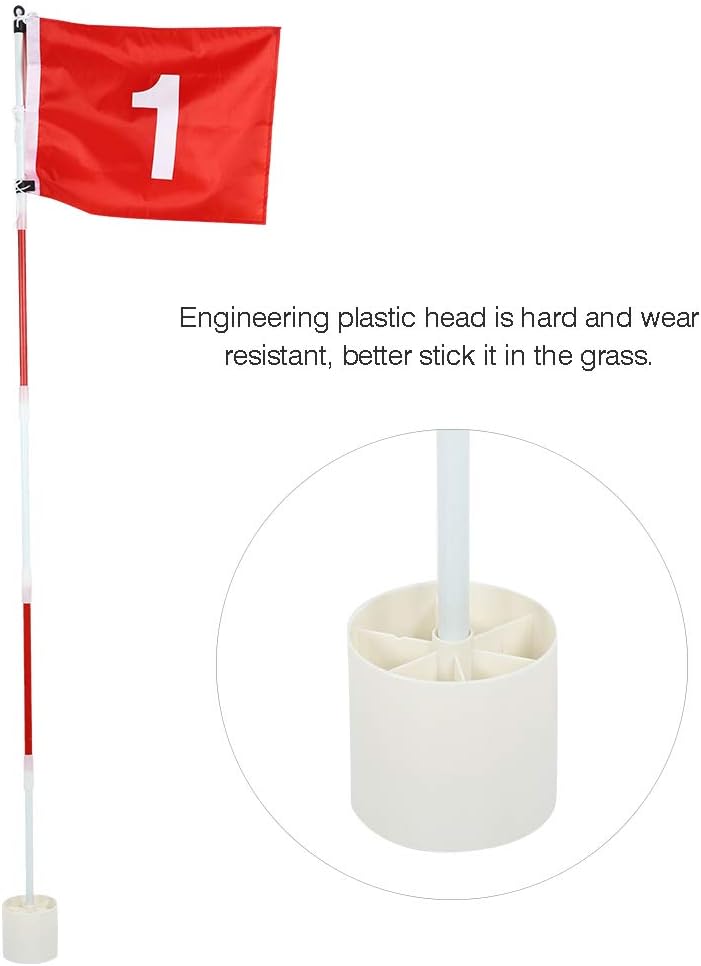 - [Professional Golf pin Flagge]: Roter Fahne Putting Green Set einstellbare grüne Flaggenhöhe. Über und unter der festen Schnalle befinden sich Gummiringe, mit denen die Flaggenhöhe eingestellt werden kann. Golf Flaggenstock 360-Grad-Drehung kann sich