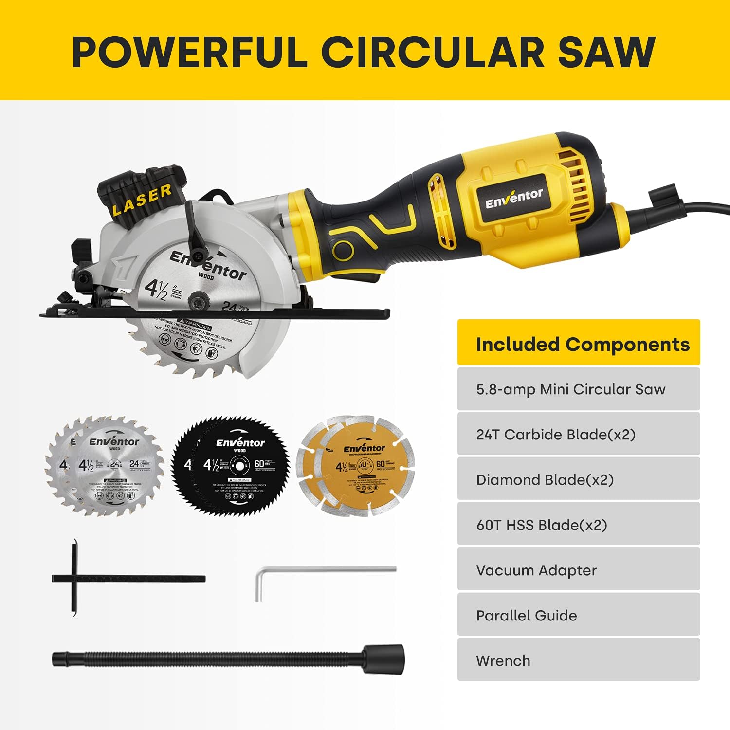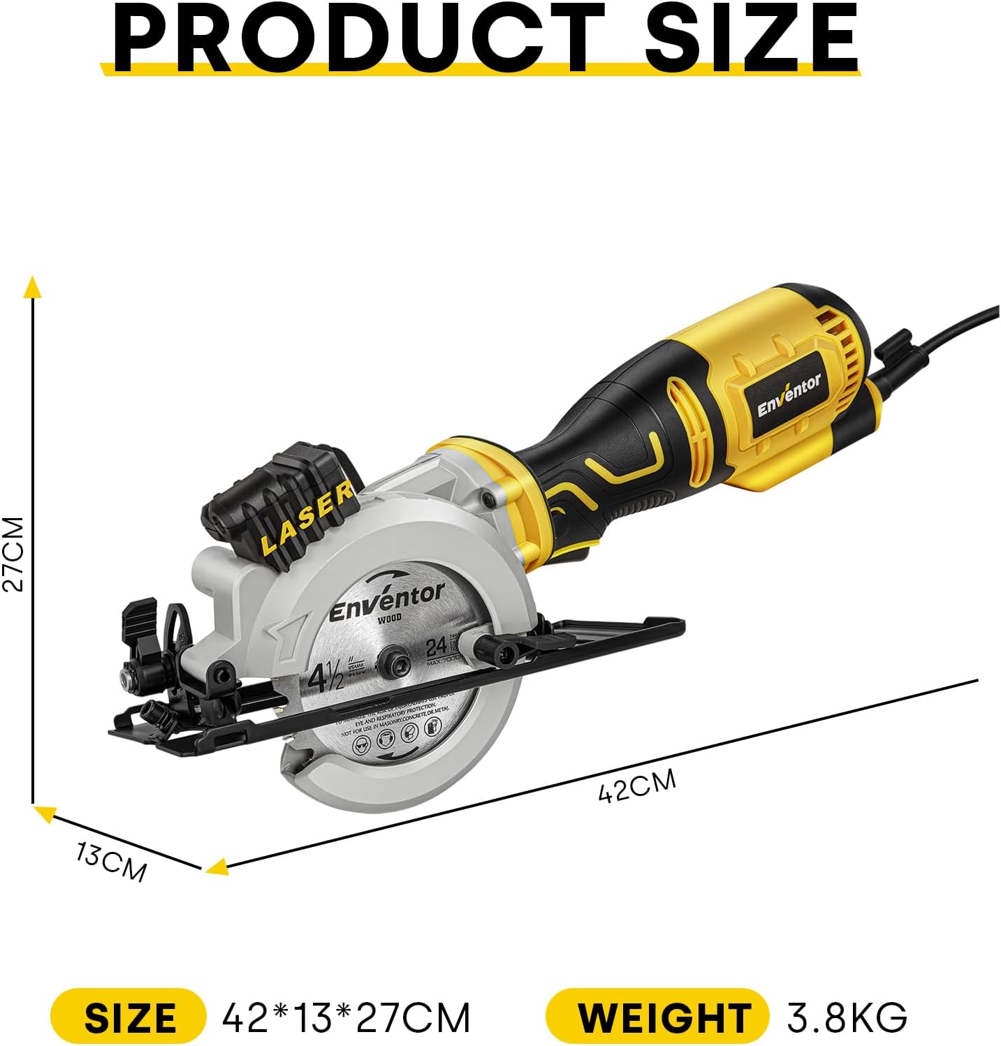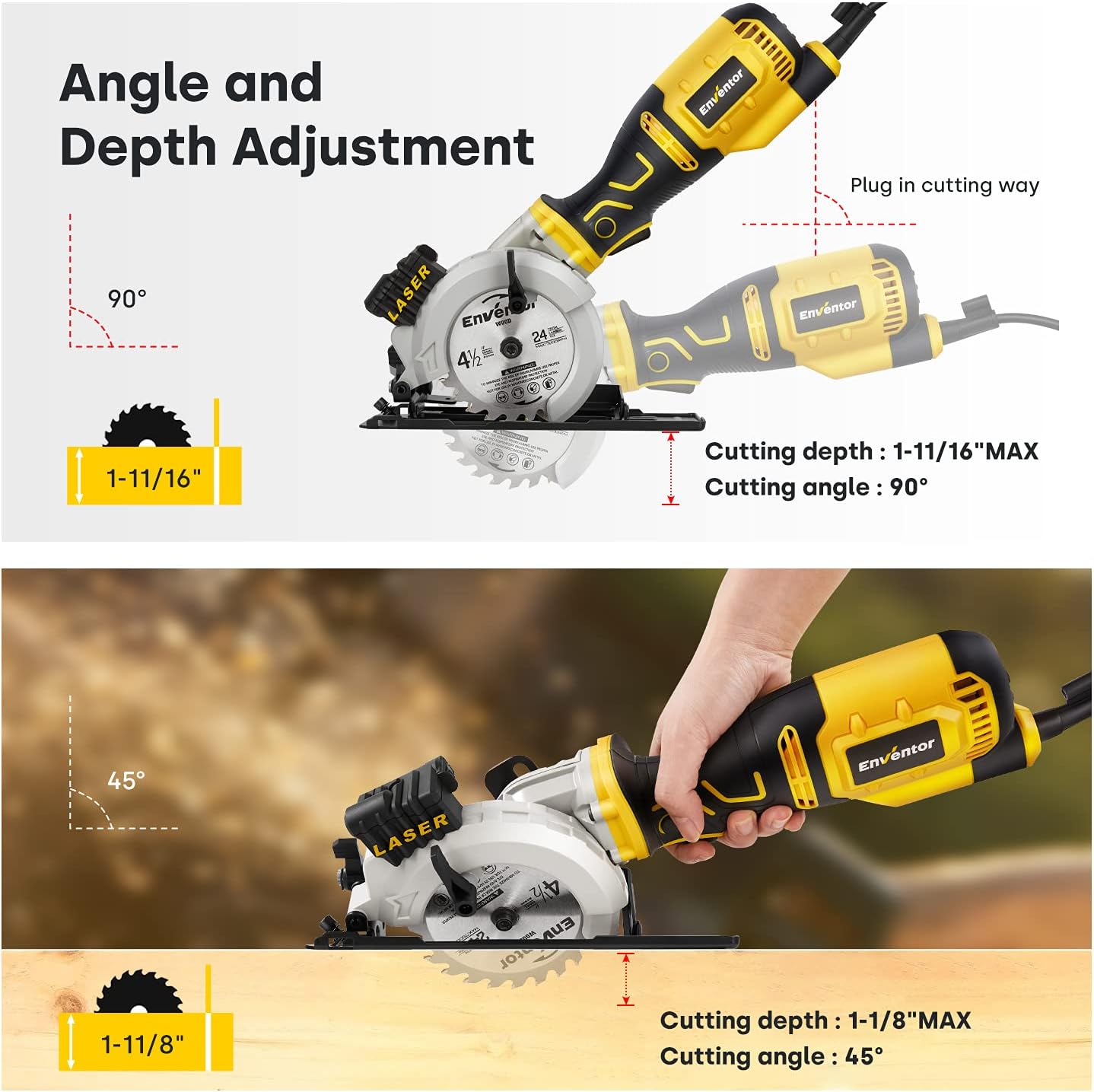 - 🔥【Einstellbare Schneidtiefe & Genaue Laserführung】Sie die Schnitttiefe 0-42mm und Gehrungswinkel 0-45 Grad schnell und komfortabel einstellen. Damit kann es Ihre vielseitigen Anforderungen erfüllen. Mit der Laserführung hält die ENVENTOR Mini
